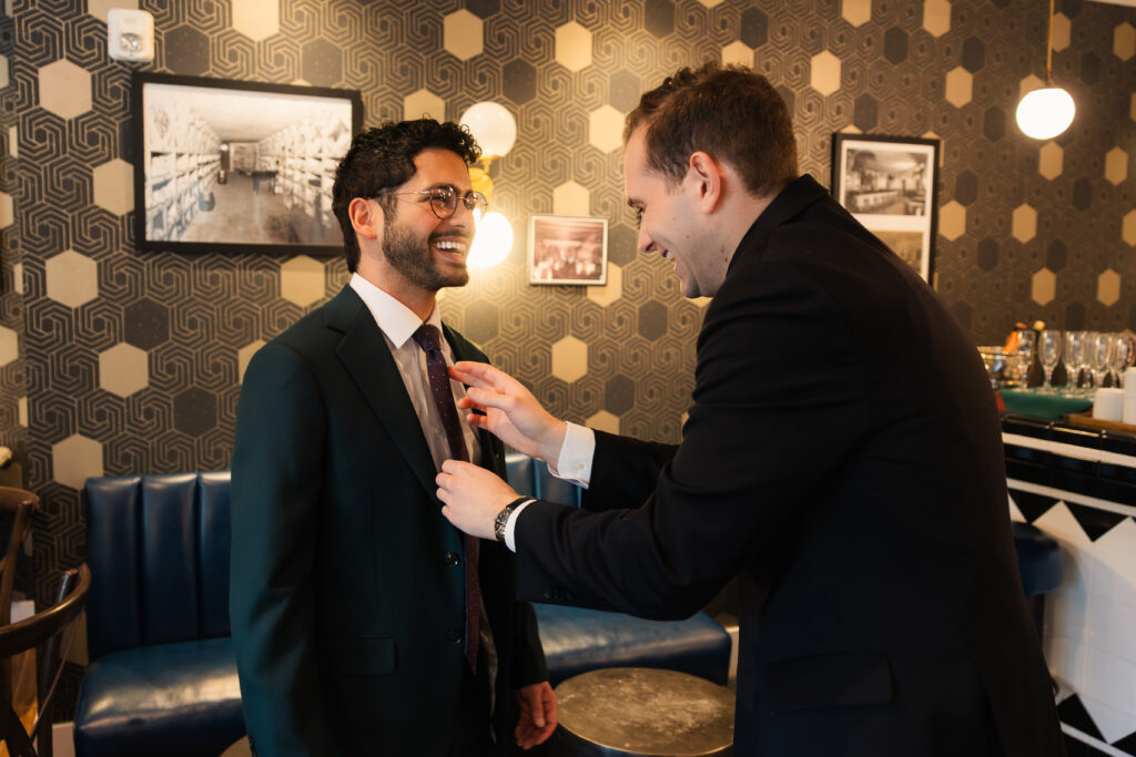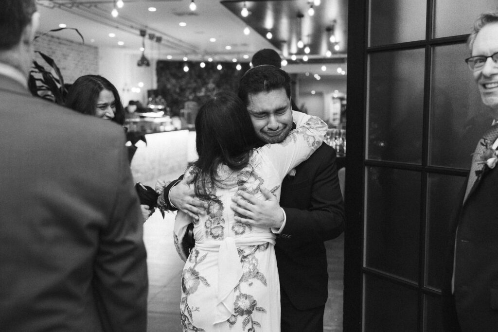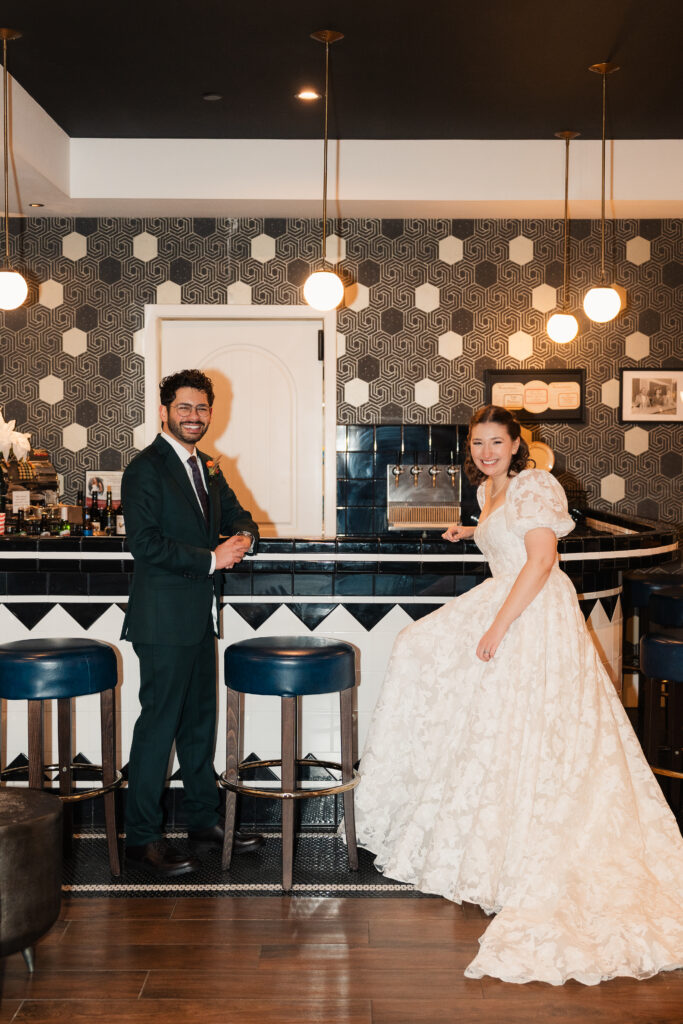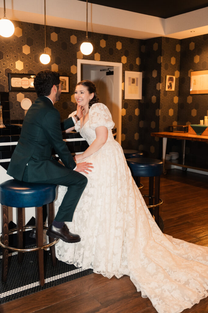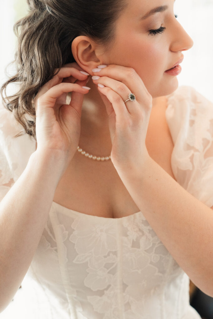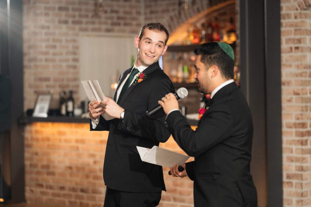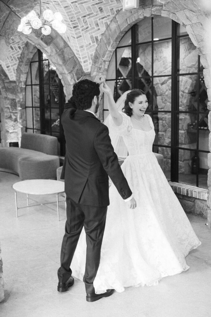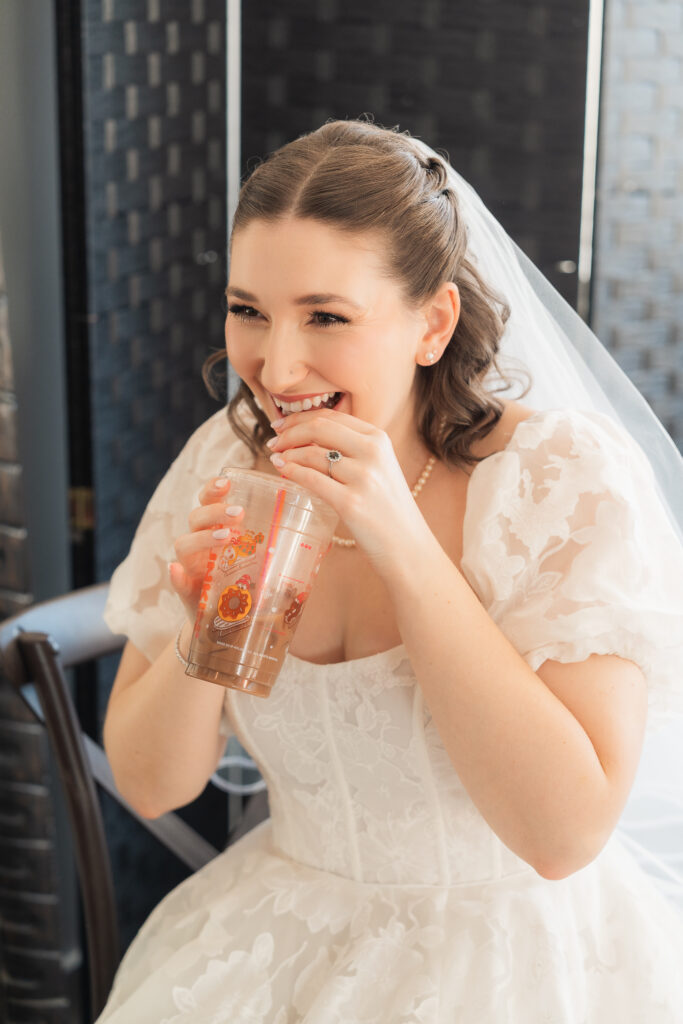 Rafi and Lea’s winter wedding at Perona Farms in Andover, New Jersey was the definition of a true seasonal celebration, with fresh snow blanketing the property and snow-capped trees framing every moment. Lea got ready with joyful anticipation, wearing a romantic floral Anthropologie gown with puff sleeves and her mother’s pearls as her something borrowed. After fueling up with her favorite Dunkin’ drink, she shared an emotional first look with her brother—wide smiles and happy tears all around. Lea and Rafi then met outside the venue for their first look, surrounded by quiet winter beauty. Rafi’s reaction was pure joy as they melted into each other, and we spent time wandering the grounds for playful, cozy portraits that highlighted Perona Farms’ rustic charm, stone details, and peaceful winter landscape.