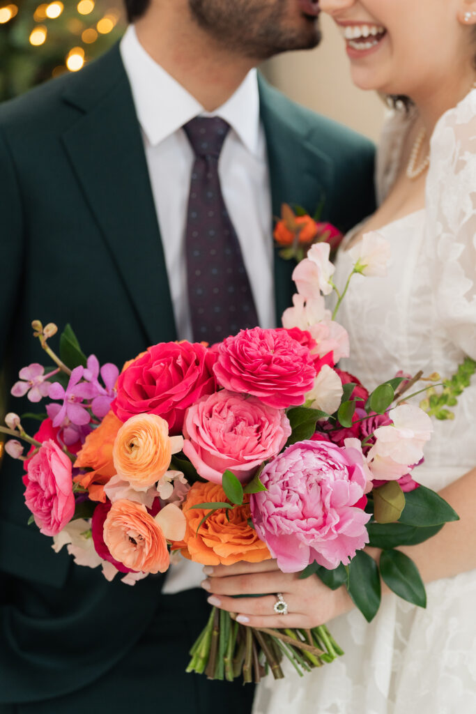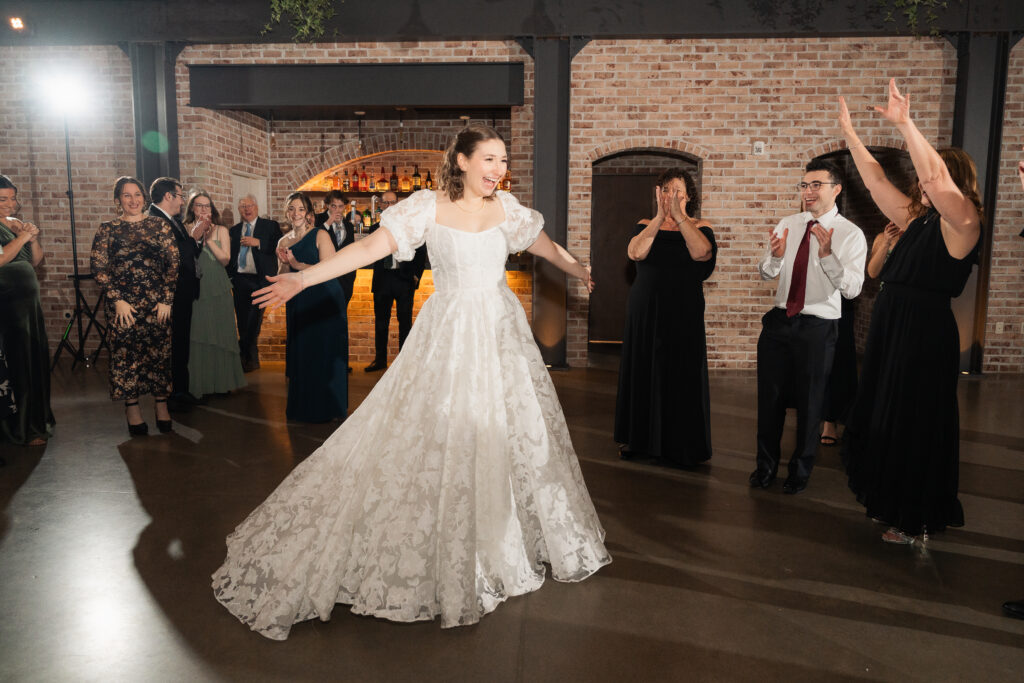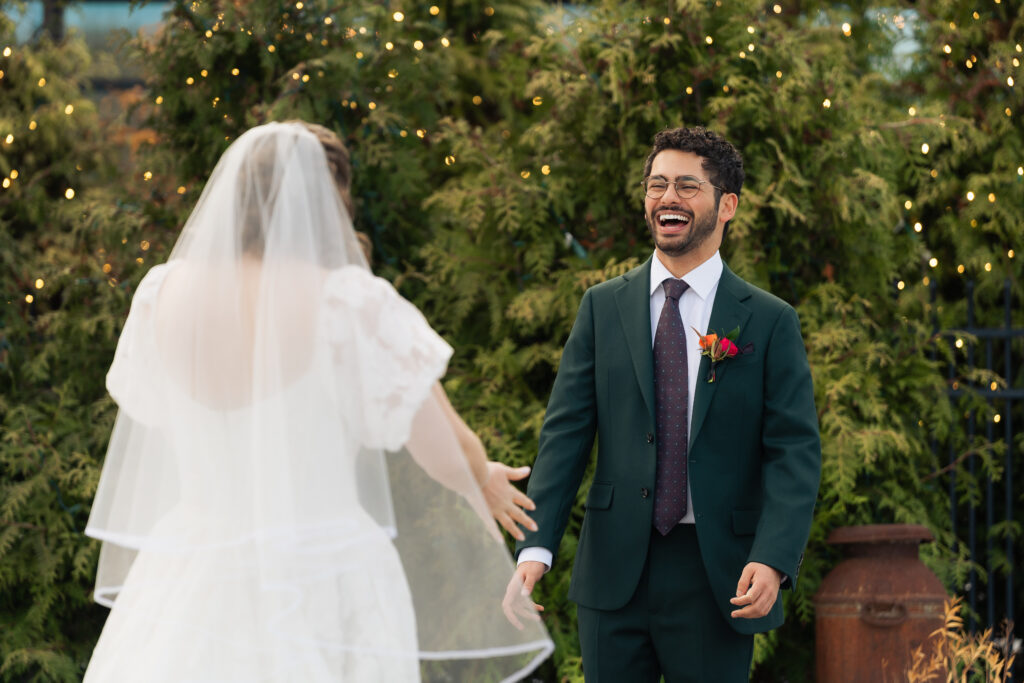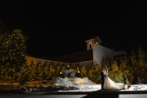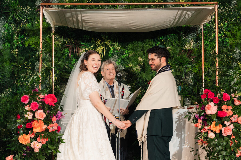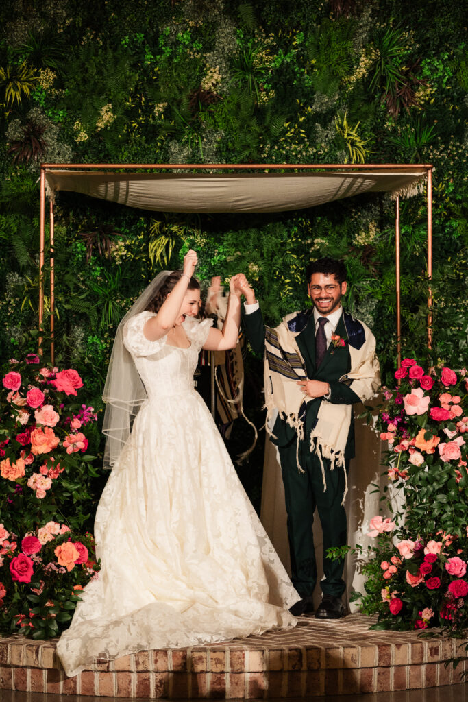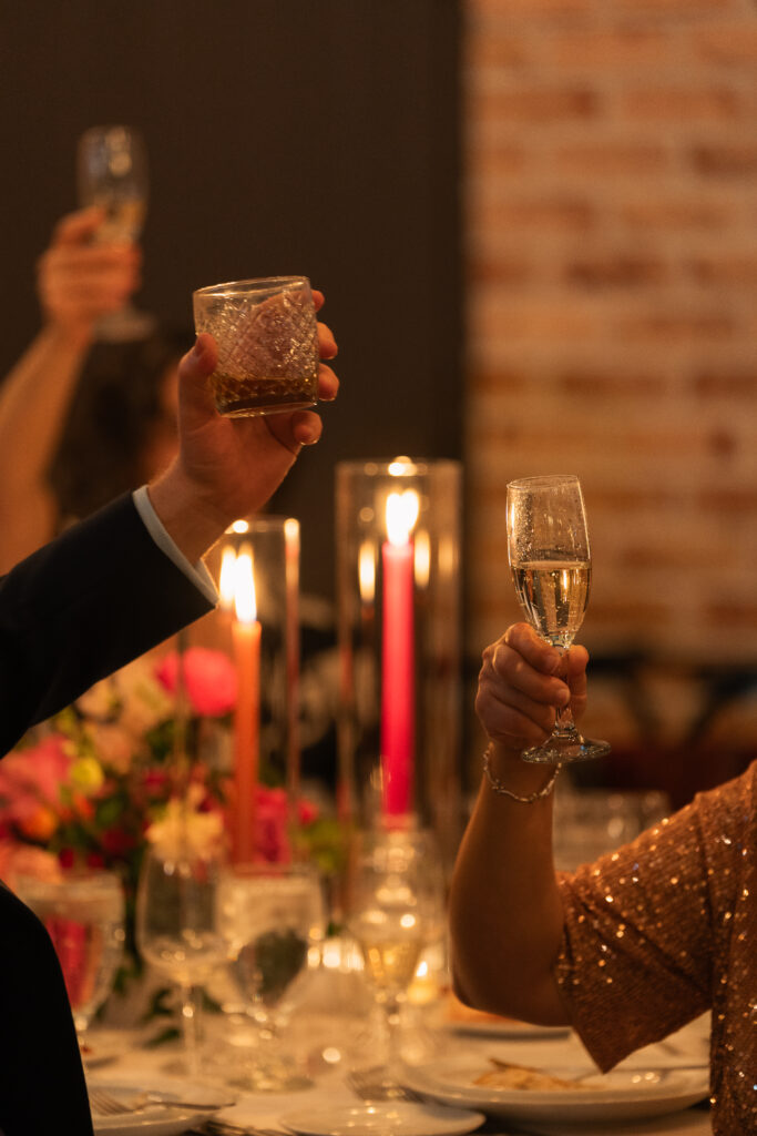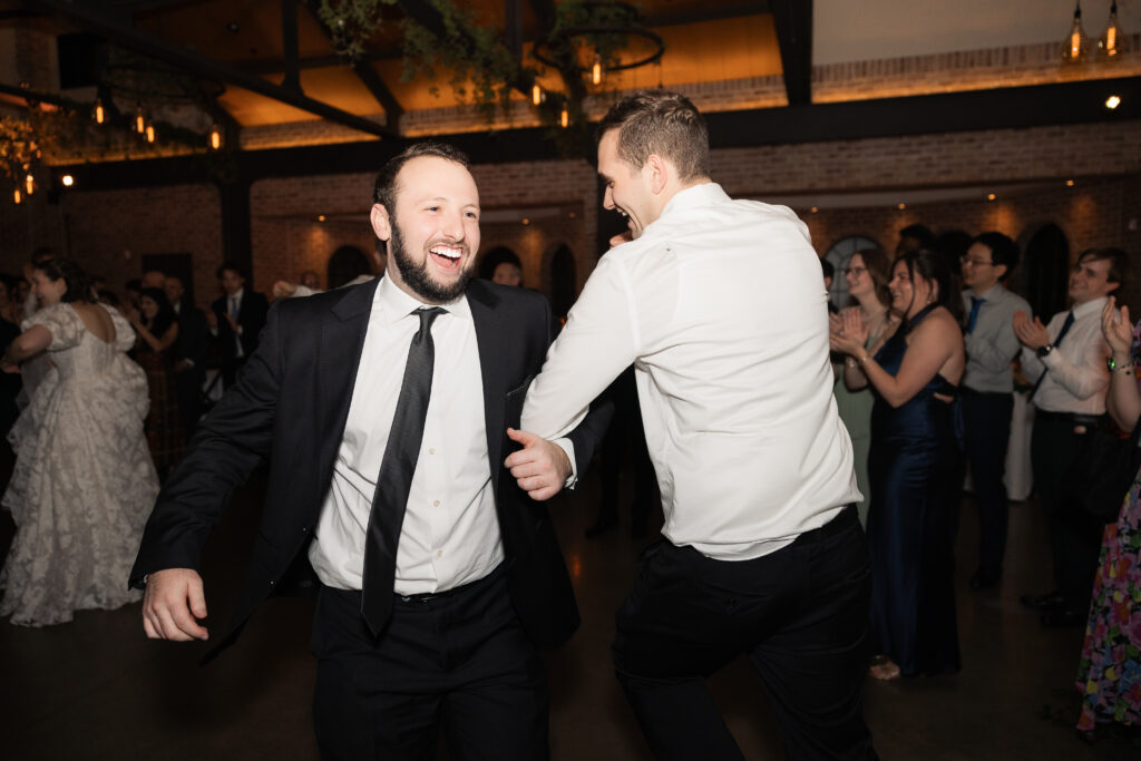 Their ceremony took place inside The Refinery at Perona Farms, a greenhouse-inspired space glowing with warm bistro lights that perfectly contrasted the snowy day outside. A chuppah overflowing with bright, colorful florals brought vibrant life to the winter neutrals, setting the tone for a deeply emotional ceremony filled with heartfelt vows, meaningful traditions, and the breaking of the glass. Cocktail hour followed with extravagant stations and incredible energy before guests moved into a lively reception filled with bold florals, pops of pink, and nonstop celebration. Lea twirled during their first dance, speeches were both hilarious and heartwarming, and the rest of the night unfolded with spirited horas and joyful dancing—proof that even in the heart of winter, Rafi and Lea’s love brought nothing but warmth. Lastly, we even ran out into the cold to take nighttime, dramatic photos with the property trees all lit up!