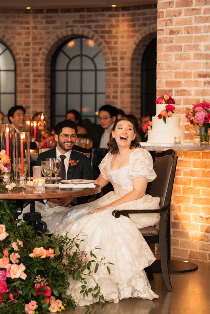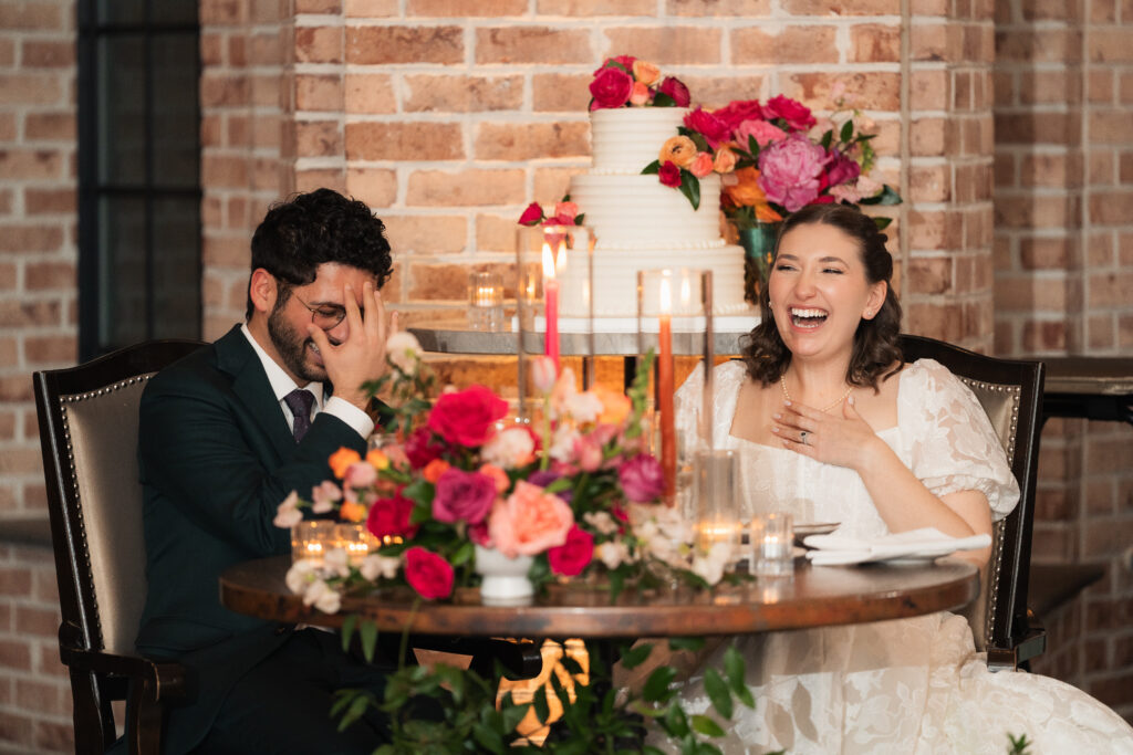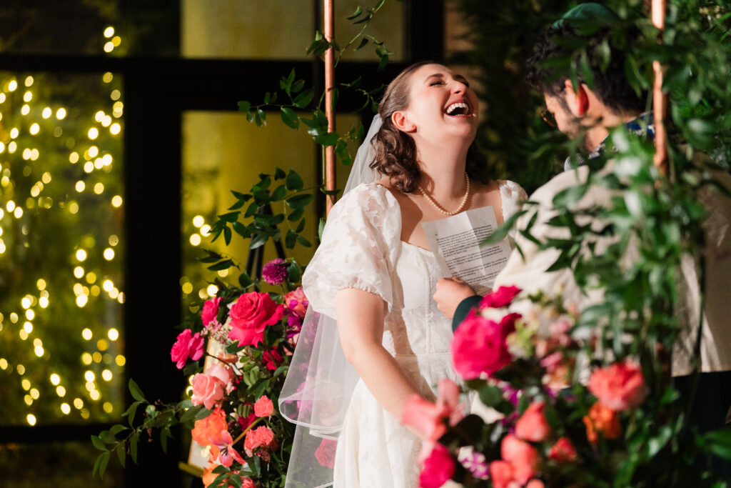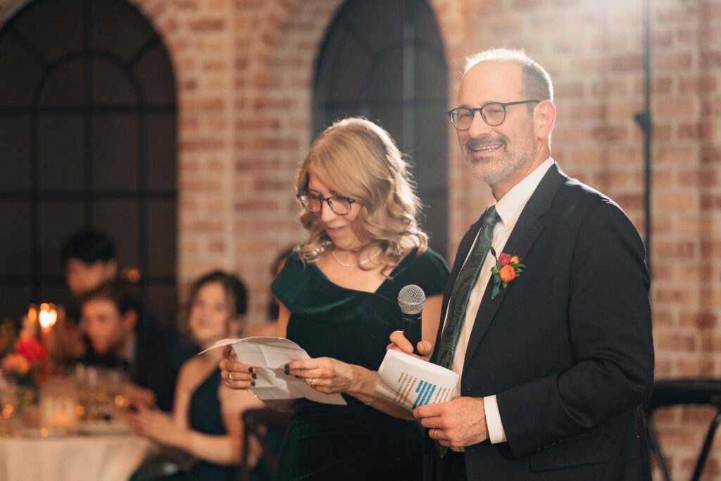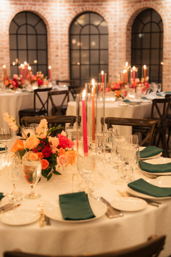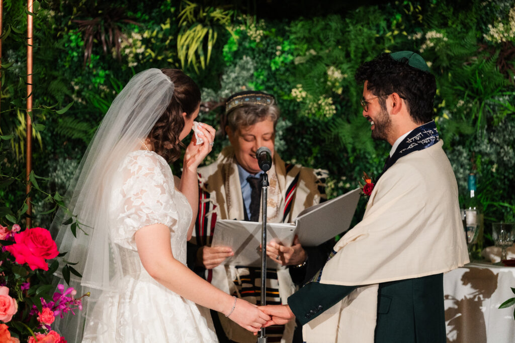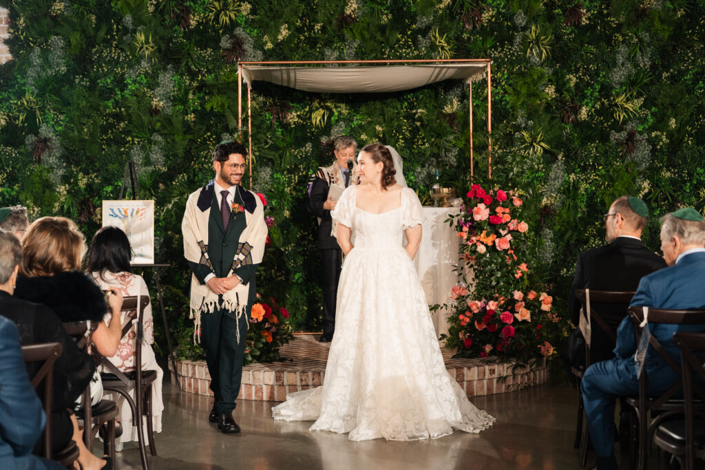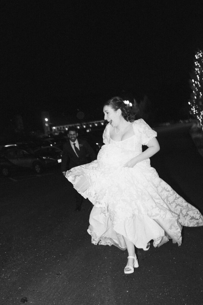 Their ceremony took place inside The Refinery at Perona Farms, a greenhouse-inspired space glowing with warm bistro lights that perfectly contrasted the snowy day outside. A chuppah overflowing with bright, colorful florals brought vibrant life to the winter neutrals, setting the tone for a deeply emotional ceremony filled with heartfelt vows, meaningful traditions, and the breaking of the glass. Cocktail hour followed with extravagant stations and incredible energy before guests moved into a lively reception filled with bold florals, pops of pink, and nonstop celebration. Lea twirled during their first dance, speeches were both hilarious and heartwarming, and the rest of the night unfolded with spirited horas and joyful dancing—proof that even in the heart of winter, Rafi and Lea’s love brought nothing but warmth. Lastly, we even ran out into the cold to take nighttime, dramatic photos with the property trees all lit up!