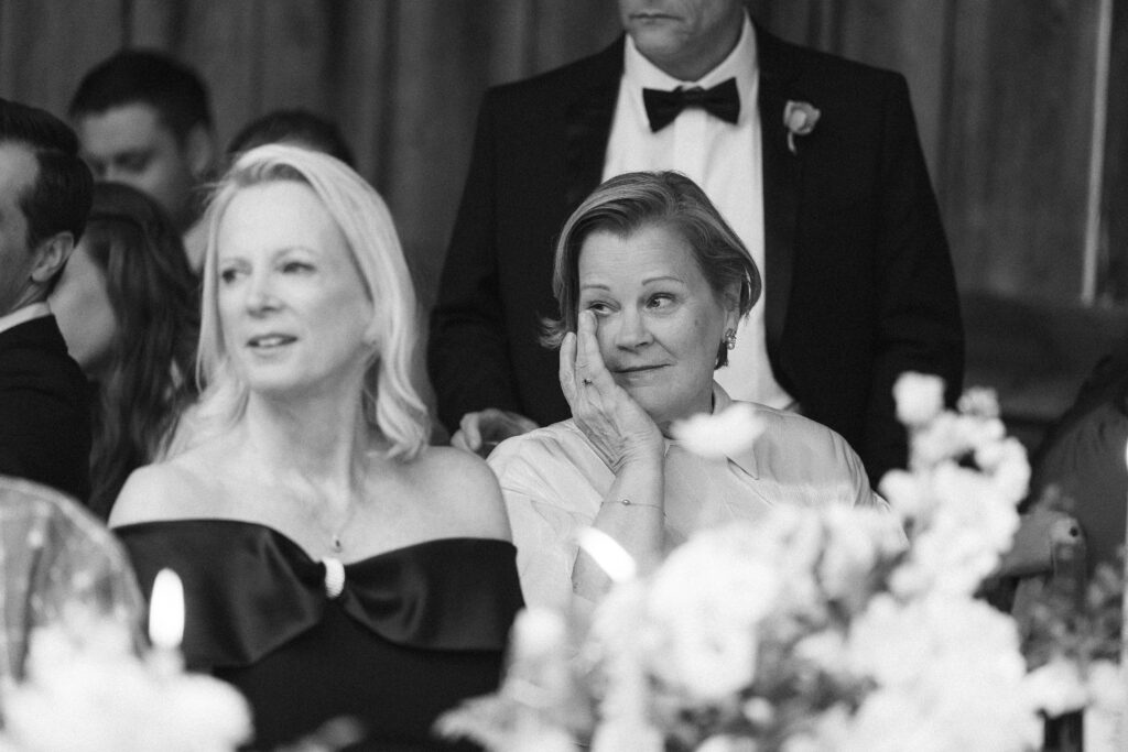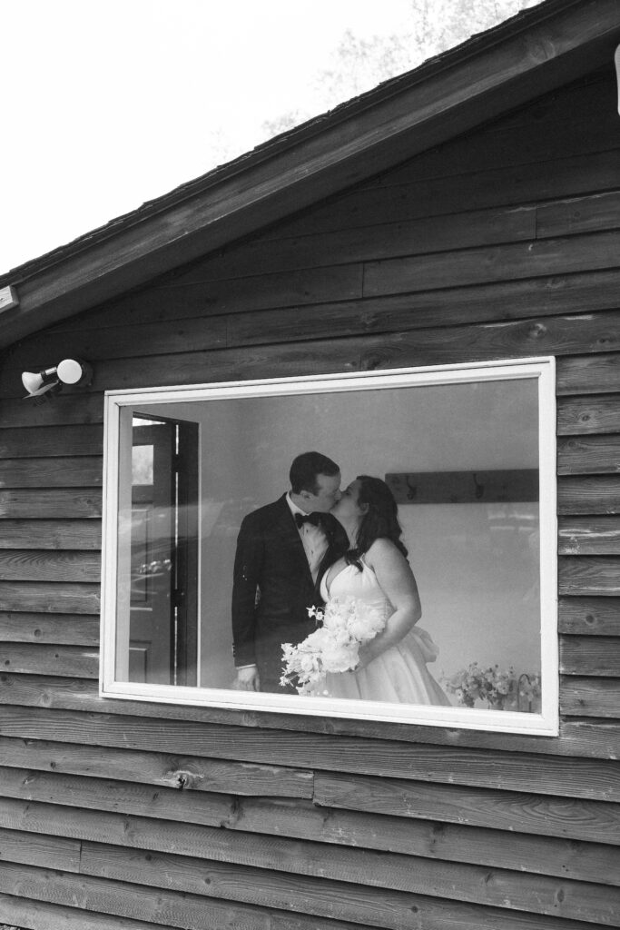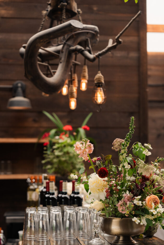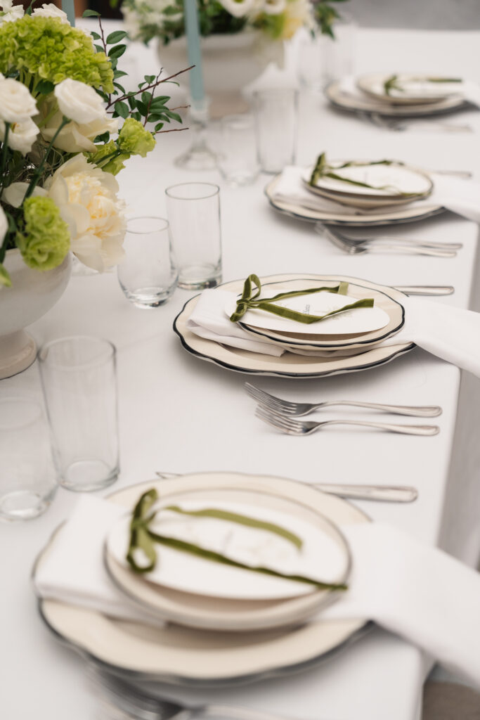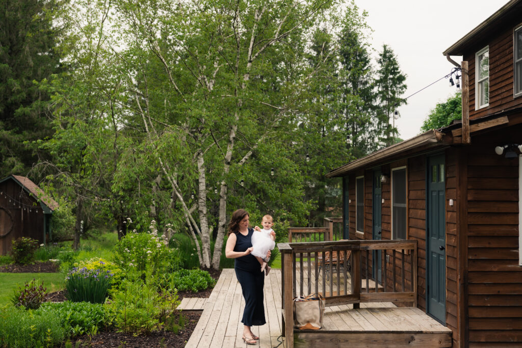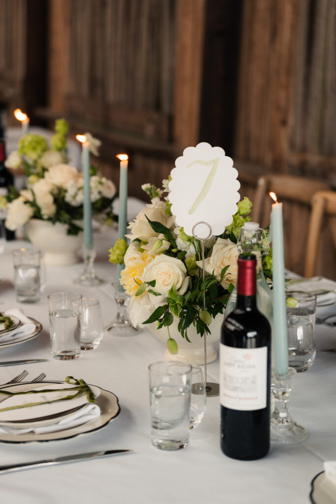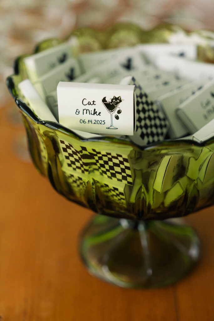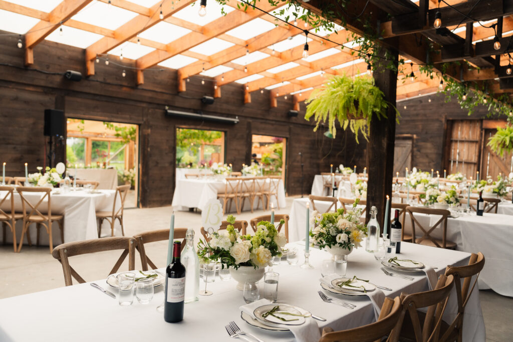 Following the ceremony, the celebration continued under a white tent for cocktail hour, complete with live saxophone music and fresh seafood by the poolside and fire pit area. The reception inside the Arnold House showcased rustic elegance with open wooden beams, hanging greenery, and organic floral décor accented with green velvet bows and soft blue tapered candlesticks. Speeches were heartfelt, and the couple’s unique cheese wheel “cake” added a playful touch to the classy evening. From intimate outdoor details to the cozy, rustic interior, Cat and Mike’s wedding perfectly blended natural charm with timeless sophistication, making it a truly memorable day in upstate New York.
