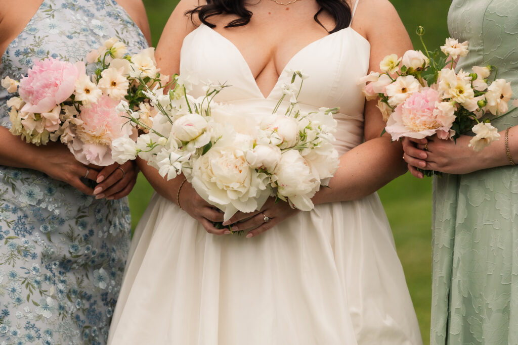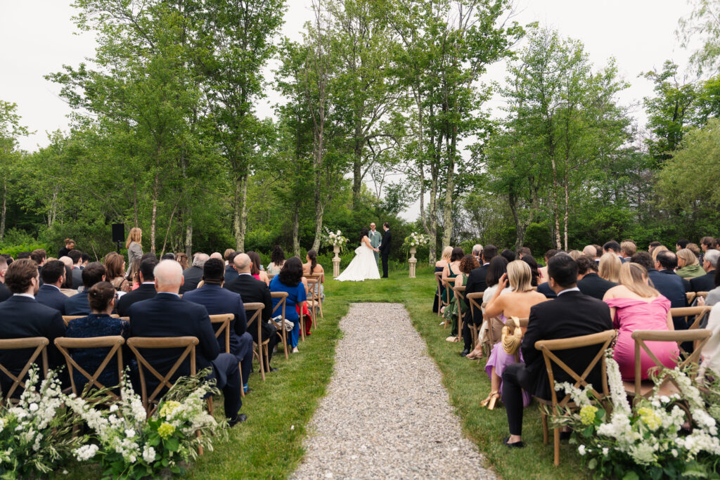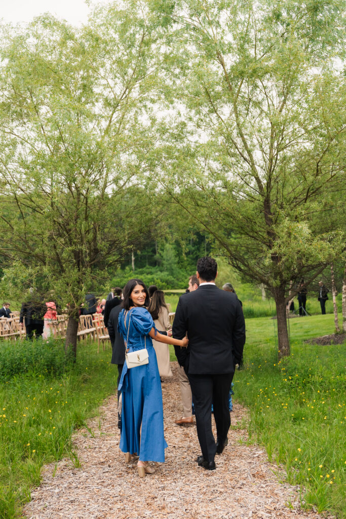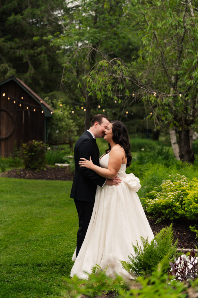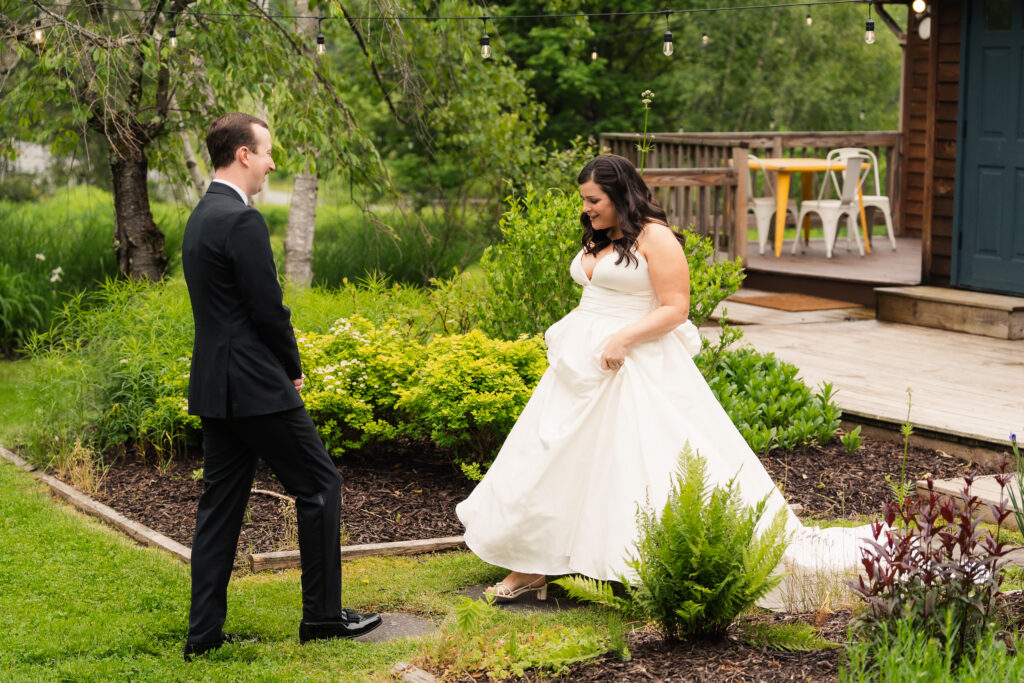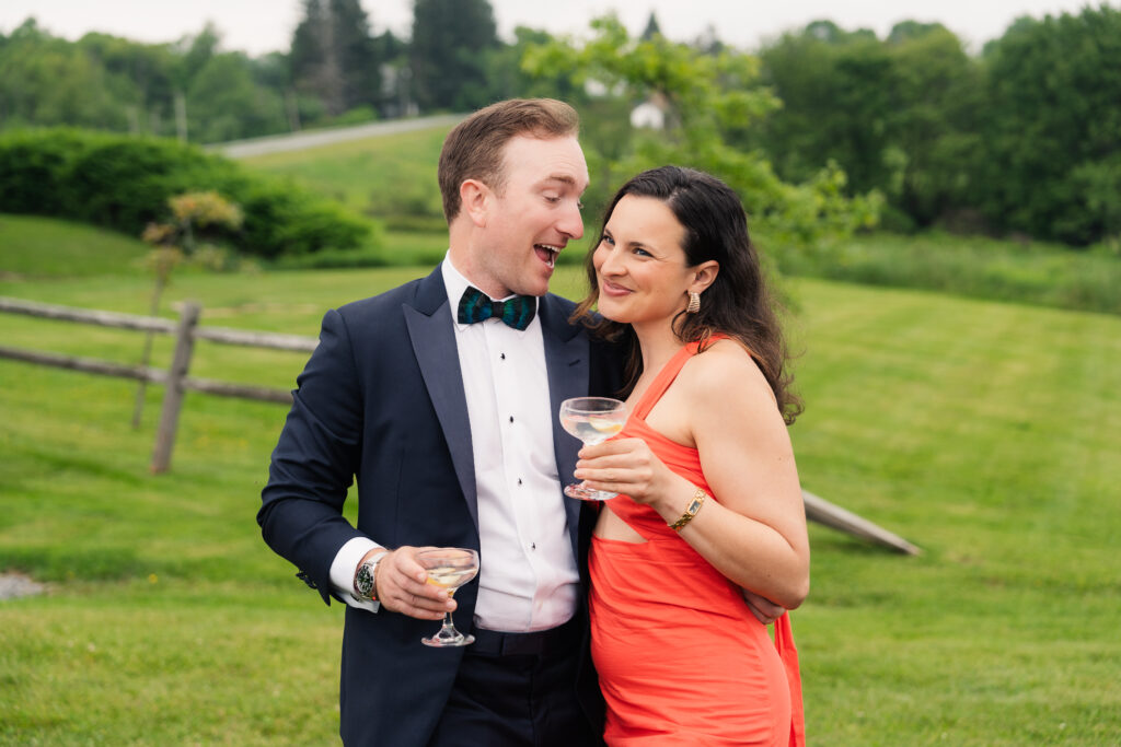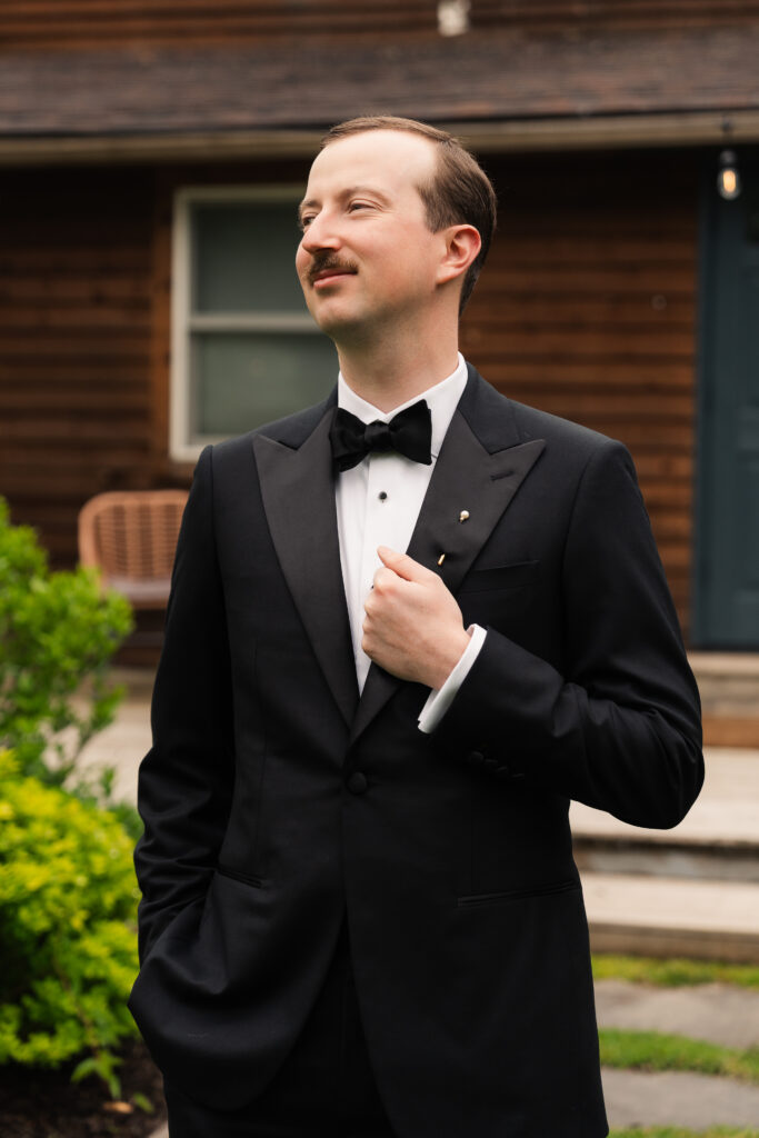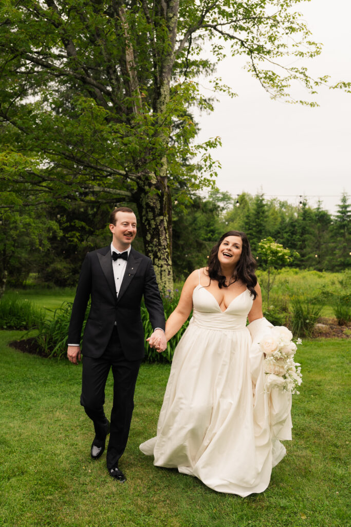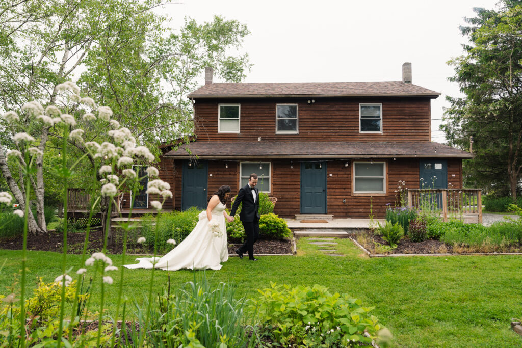 Cat and Mike’s June wedding at the stunning Arnold House in Livingston Manor, New York, was a dreamy celebration full of classic elegance and lush greenery. The day began with a heartfelt first look outside one of the charming guest houses, surrounded by vibrant floral arrangements in soft whites and verdant greens. Cat looked effortlessly timeless in her white crepe dress, while Mike stunned in a black-and-white tuxedo with a bow tie and vintage pin. Their bridal party wore soft pastel tones that perfectly complemented the floral-focused design. Guests walked through a scenic meadow to reach the outdoor ceremony, where handwritten vows, emotional laughter, and petal tosses created magical, unforgettable moments.
