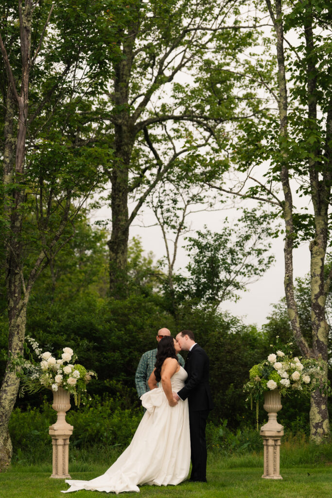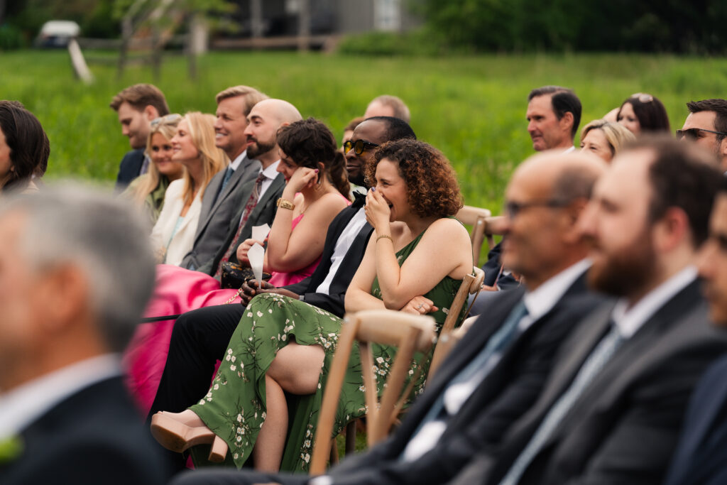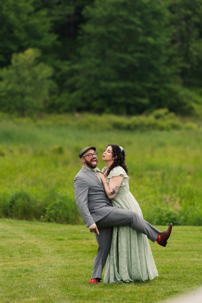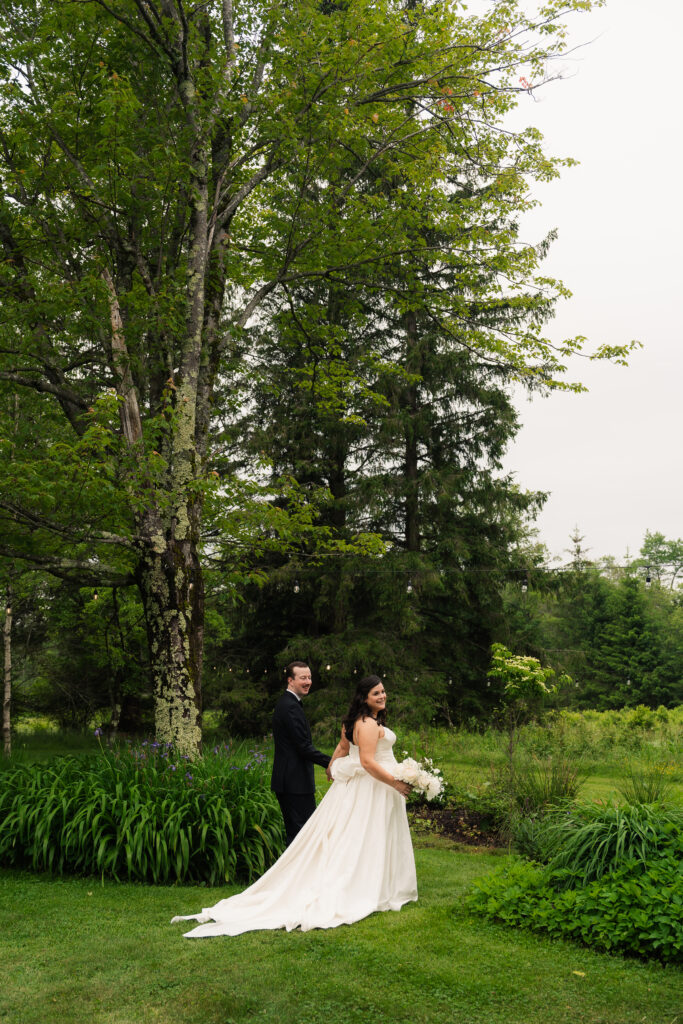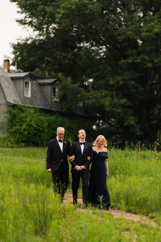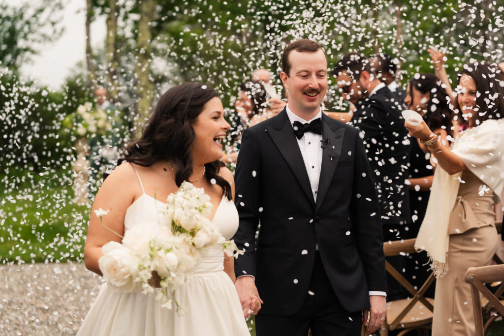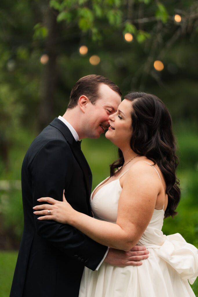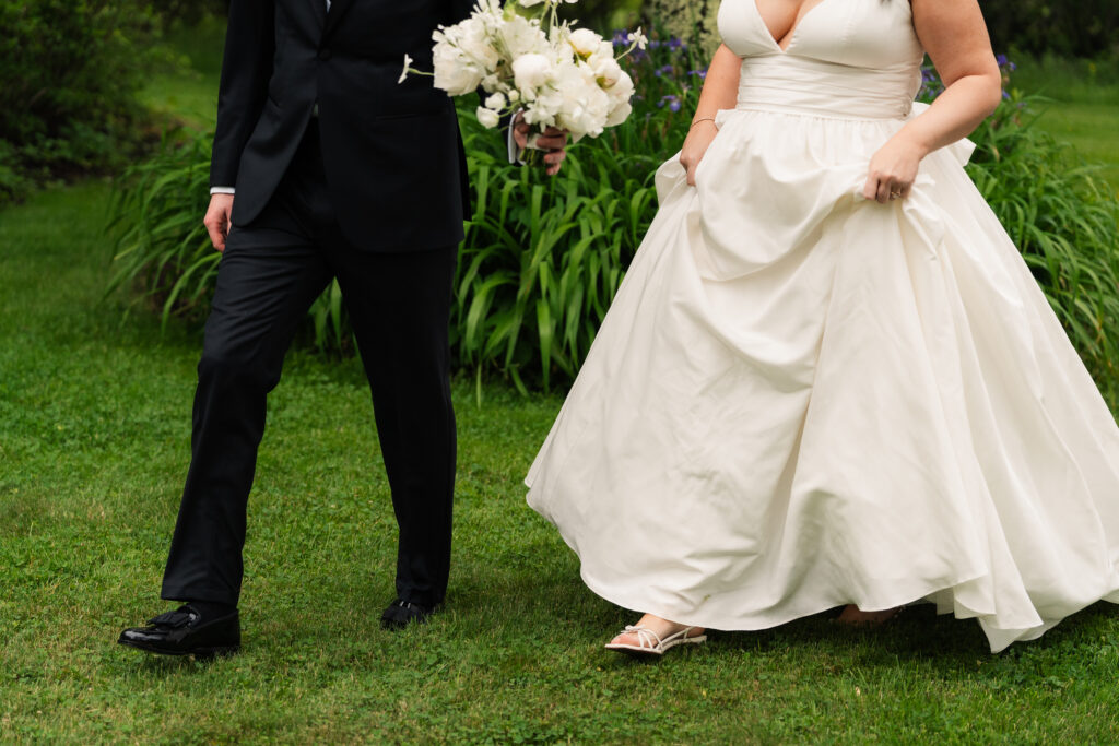 Cat and Mike’s June wedding at the stunning Arnold House in Livingston Manor, New York, was a dreamy celebration full of classic elegance and lush greenery. The day began with a heartfelt first look outside one of the charming guest houses, surrounded by vibrant floral arrangements in soft whites and verdant greens. Cat looked effortlessly timeless in her white crepe dress, while Mike stunned in a black-and-white tuxedo with a bow tie and vintage pin. Their bridal party wore soft pastel tones that perfectly complemented the floral-focused design. Guests walked through a scenic meadow to reach the outdoor ceremony, where handwritten vows, emotional laughter, and petal tosses created magical, unforgettable moments.