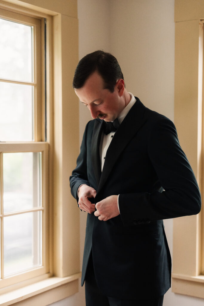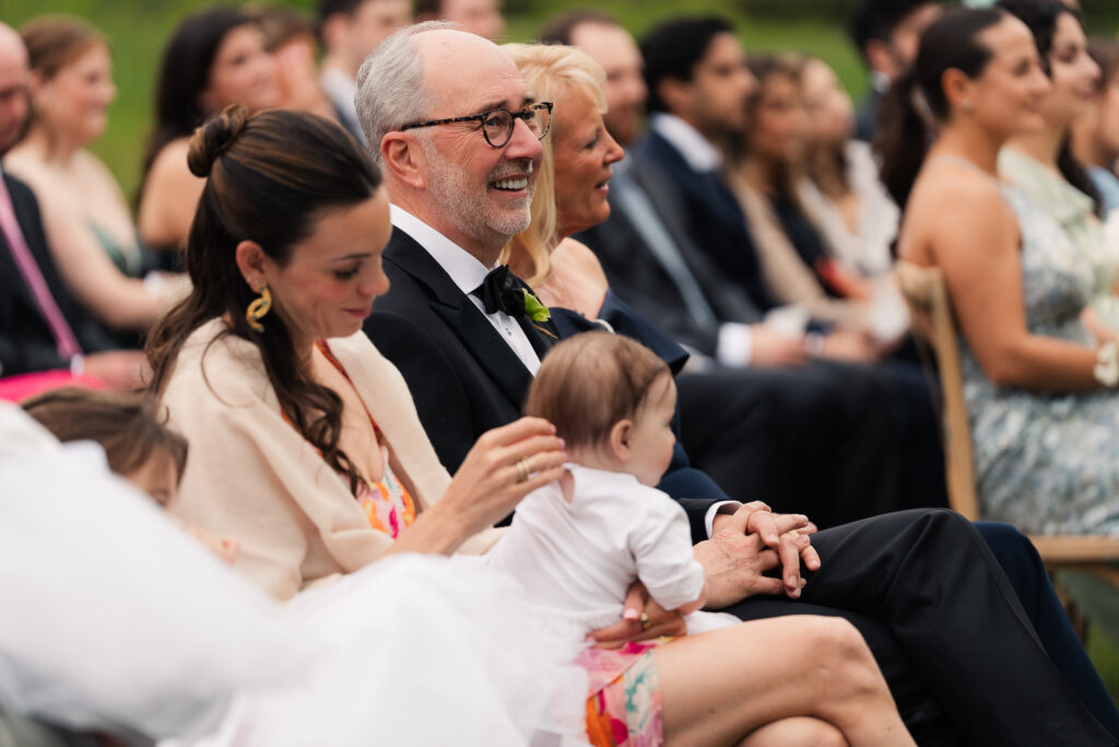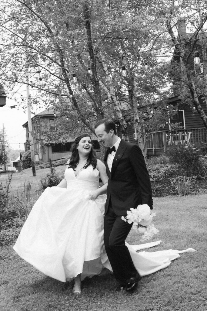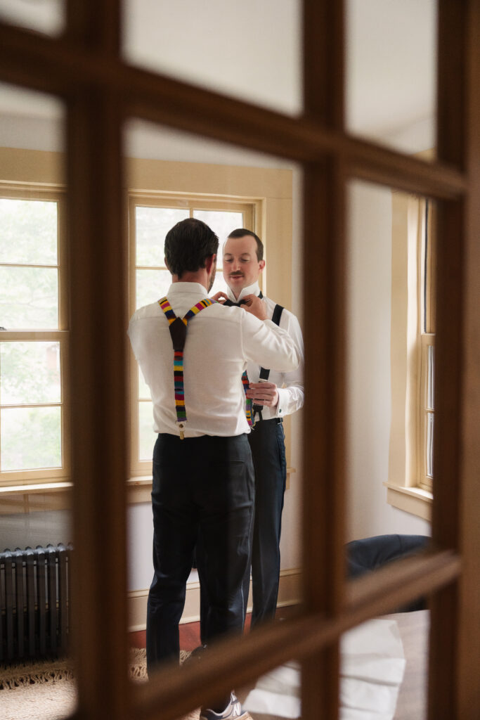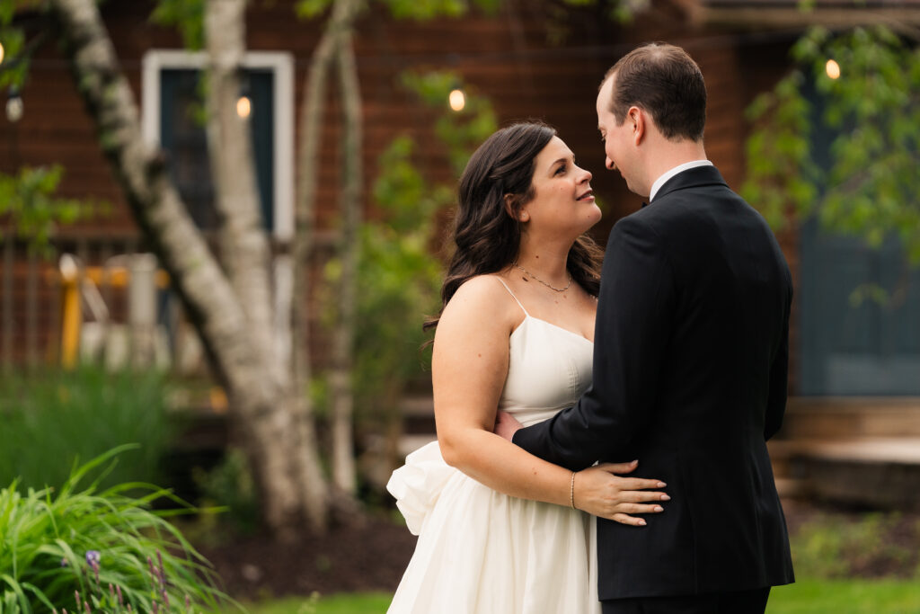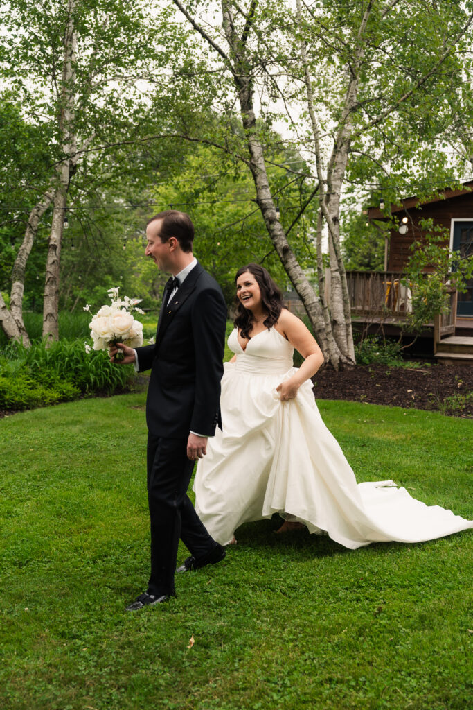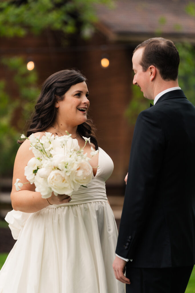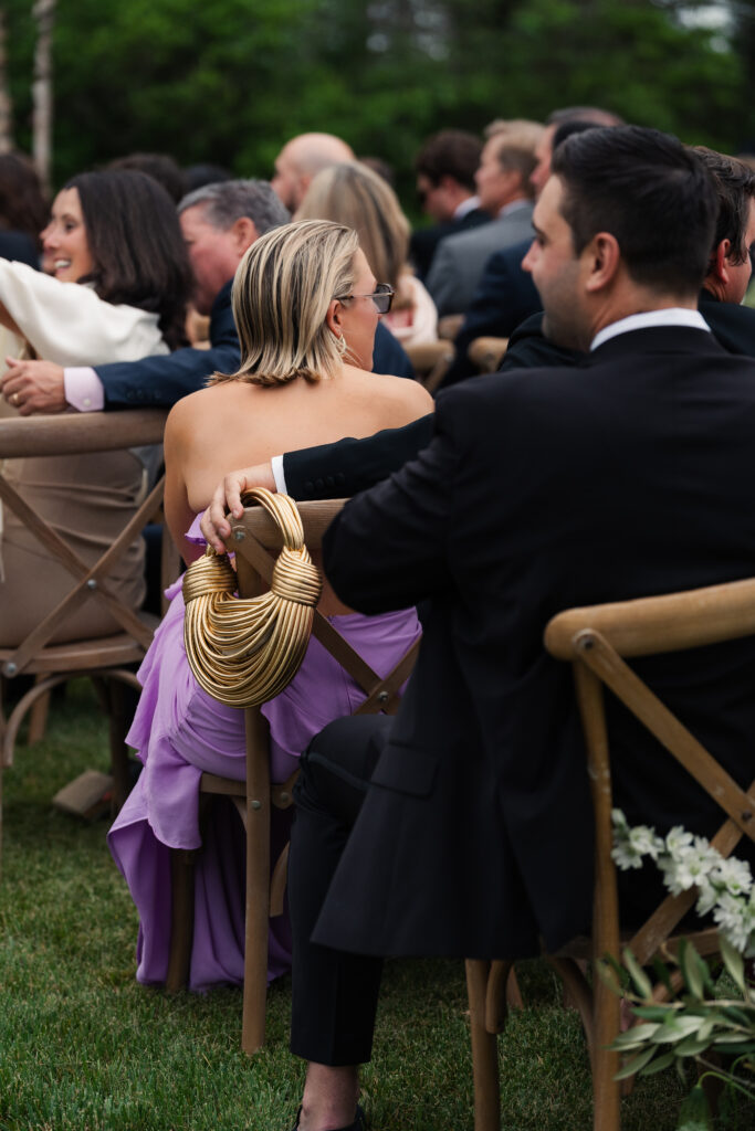 Cat and Mike’s June wedding at the stunning Arnold House in Livingston Manor, New York, was a dreamy celebration full of classic elegance and lush greenery. The day began with a heartfelt first look outside one of the charming guest houses, surrounded by vibrant floral arrangements in soft whites and verdant greens. Cat looked effortlessly timeless in her white crepe dress, while Mike stunned in a black-and-white tuxedo with a bow tie and vintage pin. Their bridal party wore soft pastel tones that perfectly complemented the floral-focused design. Guests walked through a scenic meadow to reach the outdoor ceremony, where handwritten vows, emotional laughter, and petal tosses created magical, unforgettable moments.