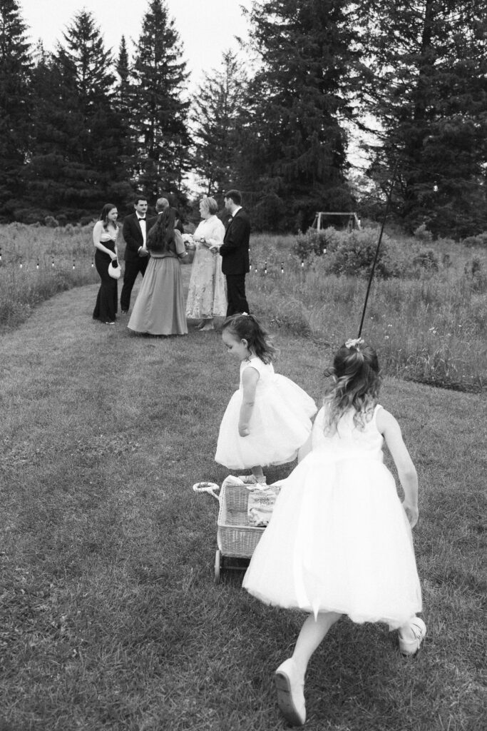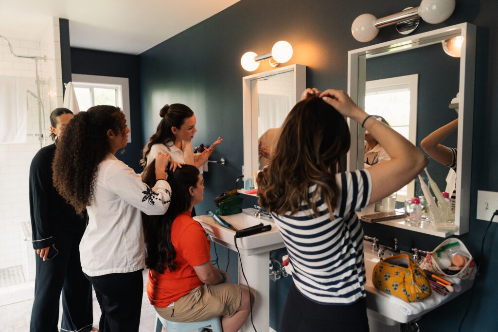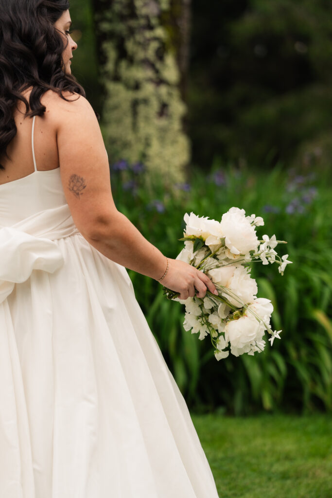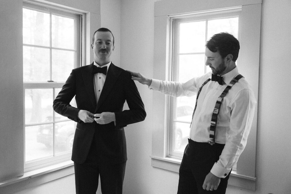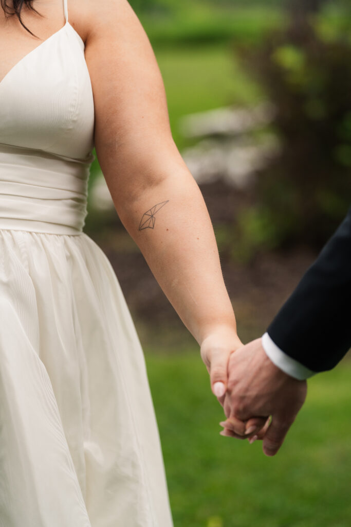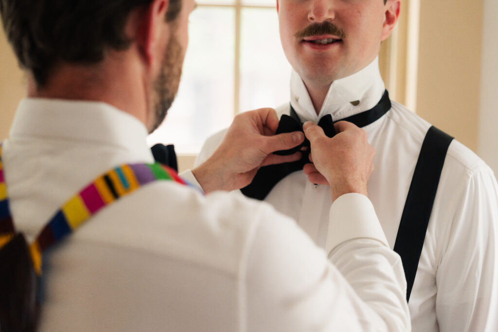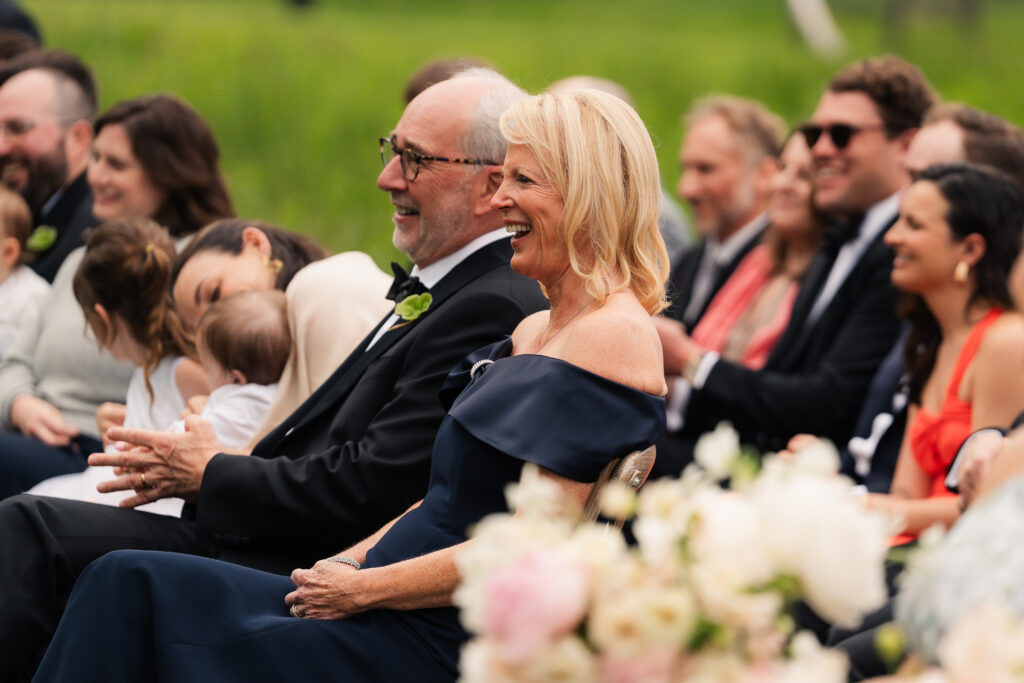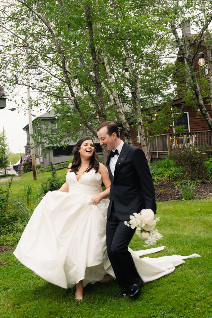 Cat and Mike’s June wedding at the stunning Arnold House in Livingston Manor, New York, was a dreamy celebration full of classic elegance and lush greenery. The day began with a heartfelt first look outside one of the charming guest houses, surrounded by vibrant floral arrangements in soft whites and verdant greens. Cat looked effortlessly timeless in her white crepe dress, while Mike stunned in a black-and-white tuxedo with a bow tie and vintage pin. Their bridal party wore soft pastel tones that perfectly complemented the floral-focused design. Guests walked through a scenic meadow to reach the outdoor ceremony, where handwritten vows, emotional laughter, and petal tosses created magical, unforgettable moments.