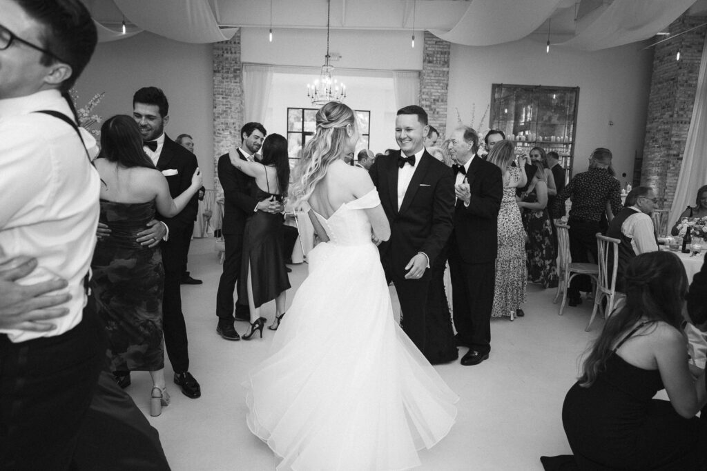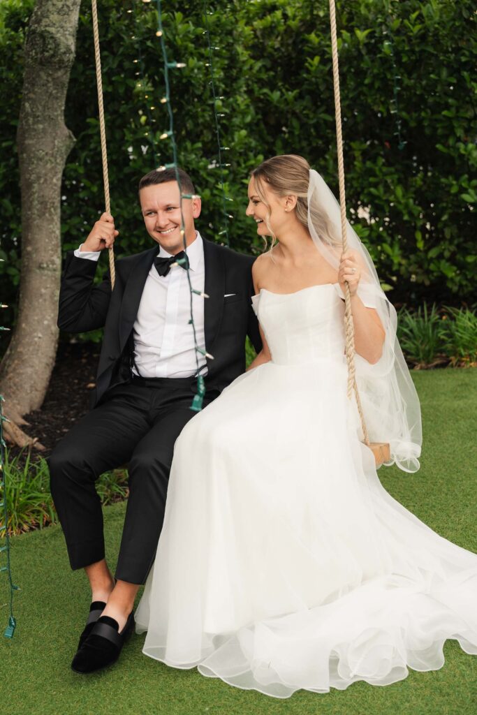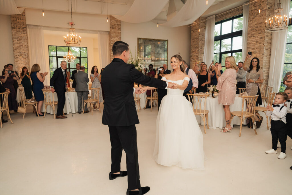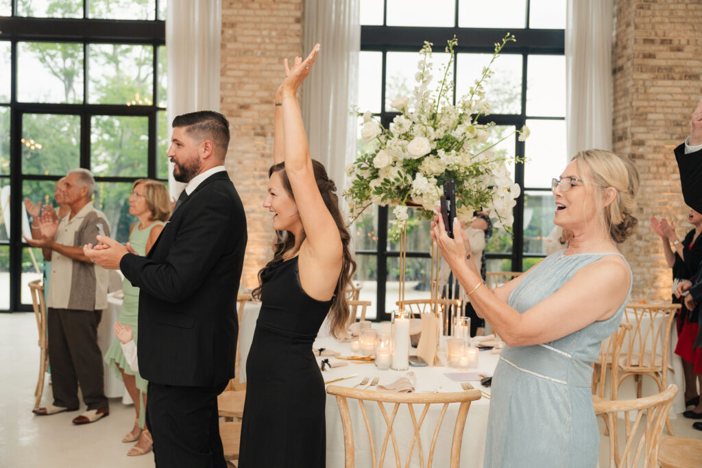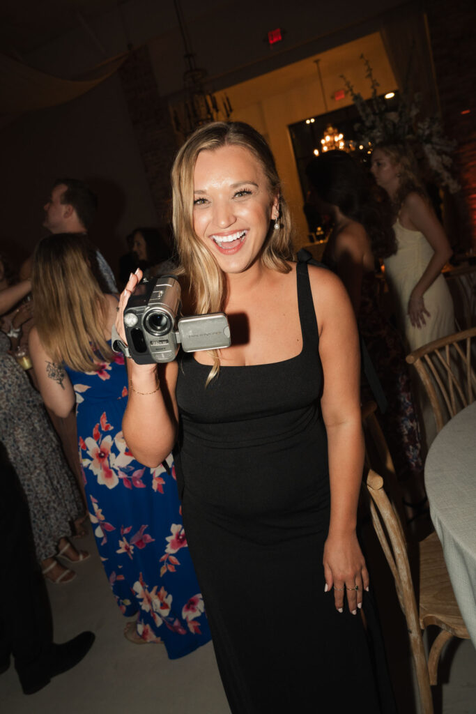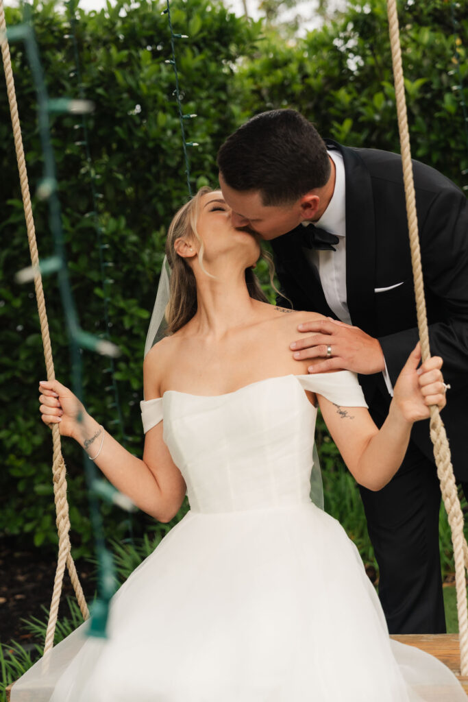 From there, everything unfolded beautifully. Katie, in a flowing organza gown, and David, in a classic black tux, shared private vows outside after their candlelit indoor ceremony—recorded on camcorder by their maid of honor and officiated by Katie’s brother. After some effortless portraits by the venue’s iconic swing and enjoy cocktail hour outdoors before heading into a reception full of greenery, warm wood textures, white florals, and emotional speeches. By nightfall, everyone packed the dance floor, celebrating not just a wedding day but a powerful, love-filled redemption of the one they never got to have.