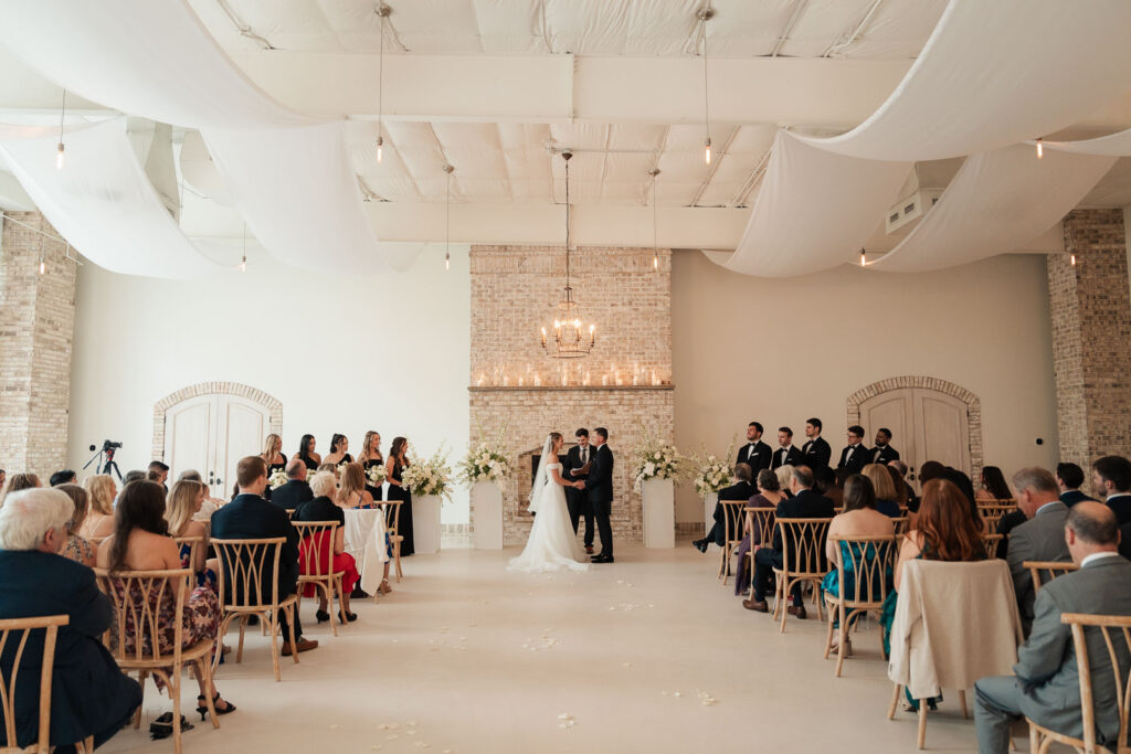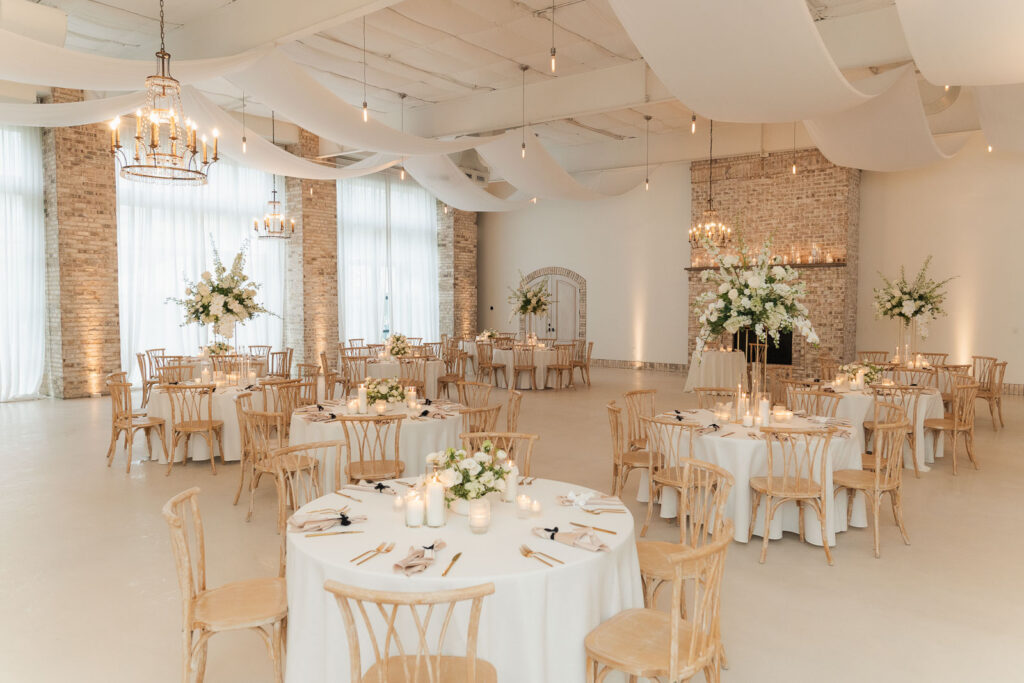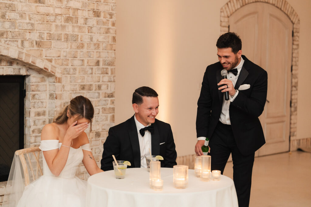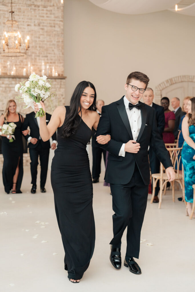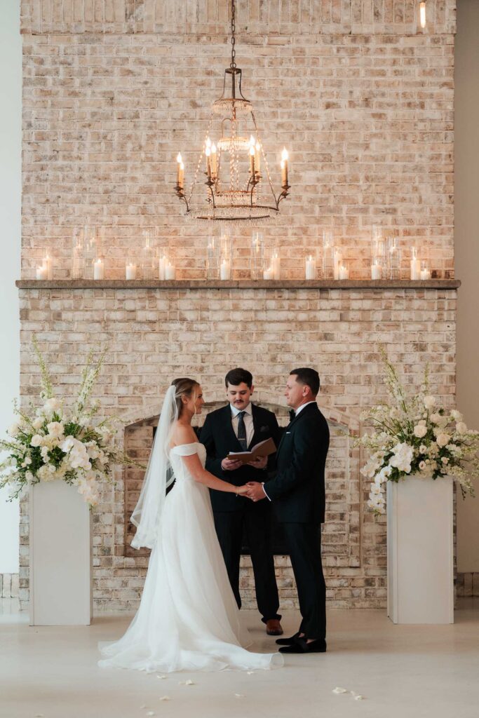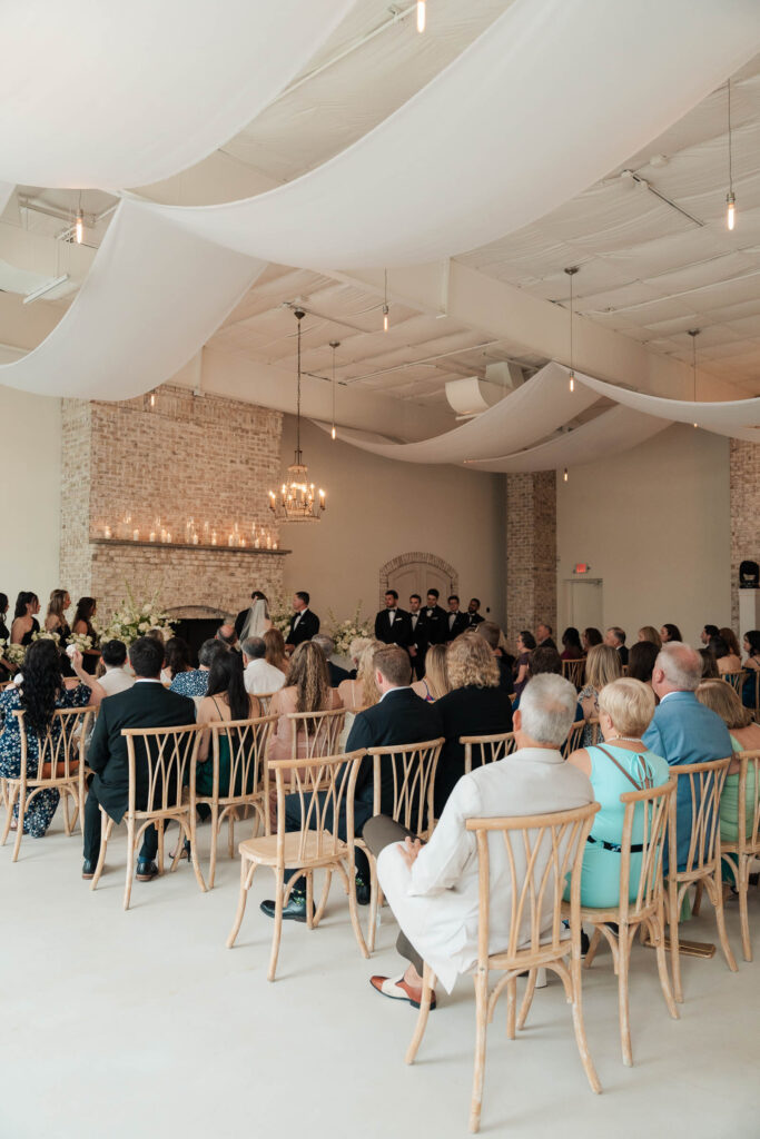 From there, everything unfolded beautifully. Katie, in a flowing organza gown, and David, in a classic black tux, shared private vows outside after their candlelit indoor ceremony—recorded on camcorder by their maid of honor and officiated by Katie’s brother. After some effortless portraits by the venue’s iconic swing and enjoy cocktail hour outdoors before heading into a reception full of greenery, warm wood textures, white florals, and emotional speeches. By nightfall, everyone packed the dance floor, celebrating not just a wedding day but a powerful, love-filled redemption of the one they never got to have.