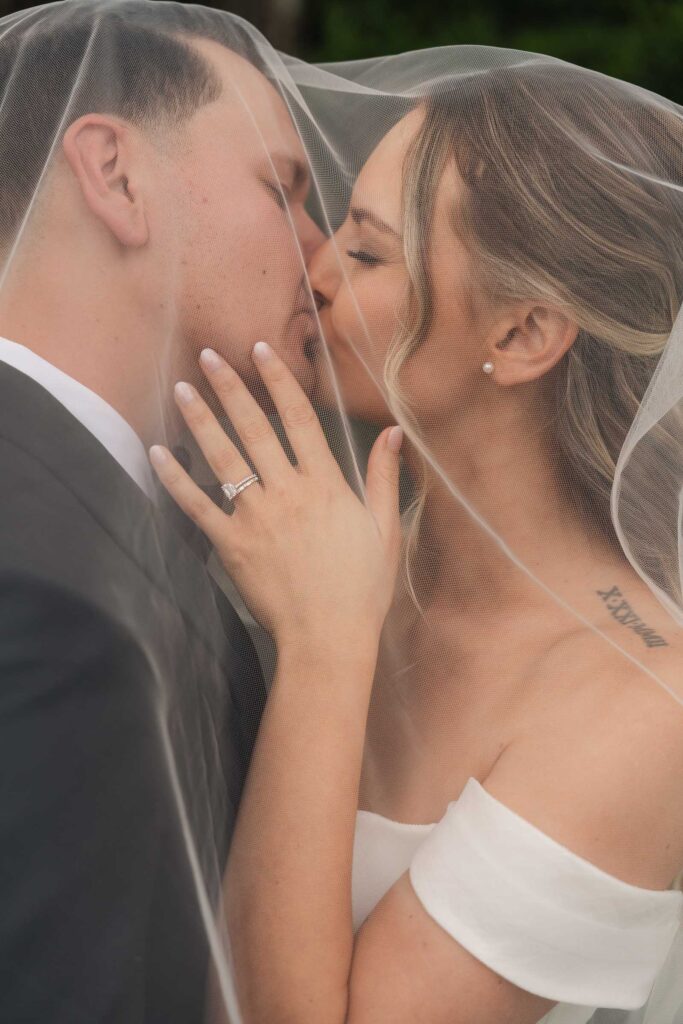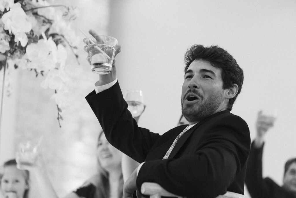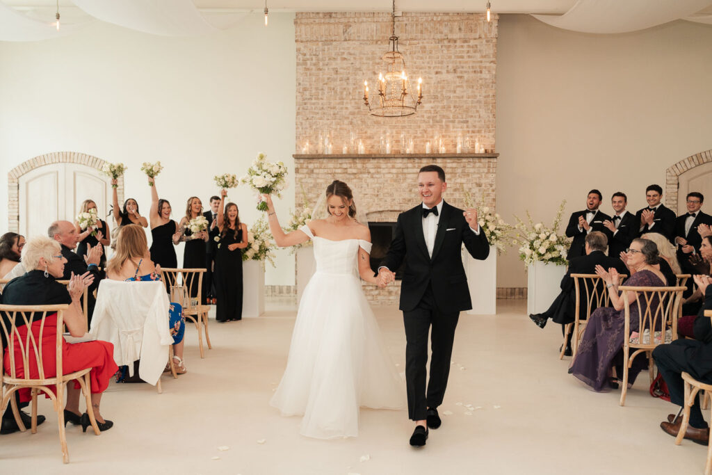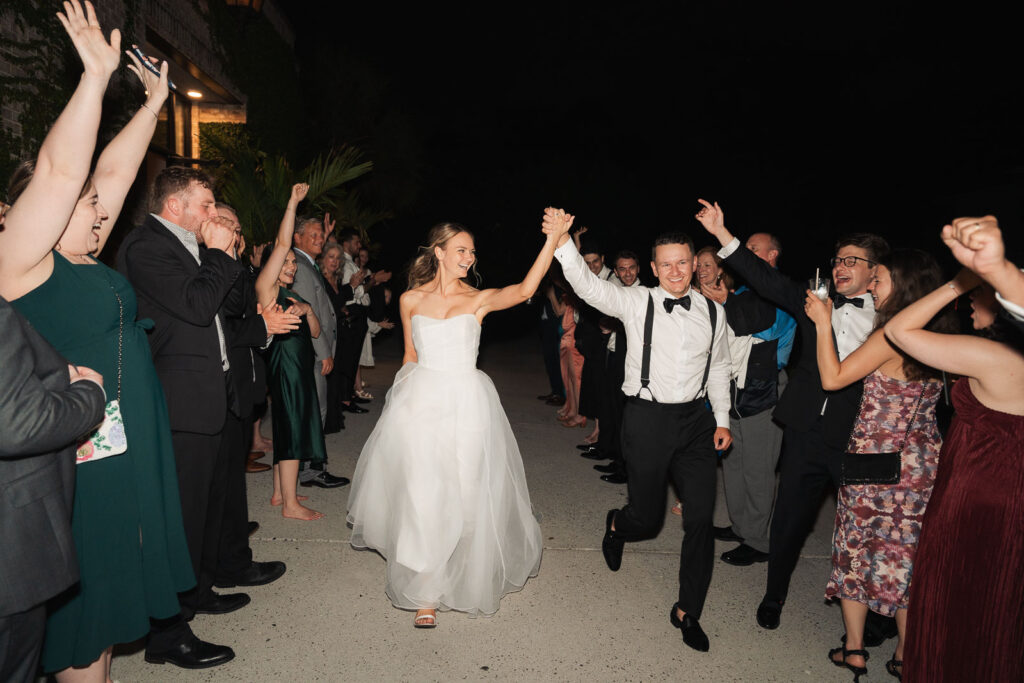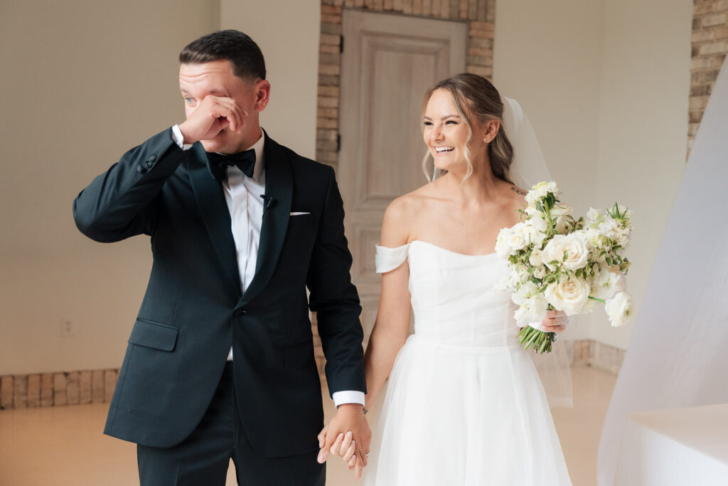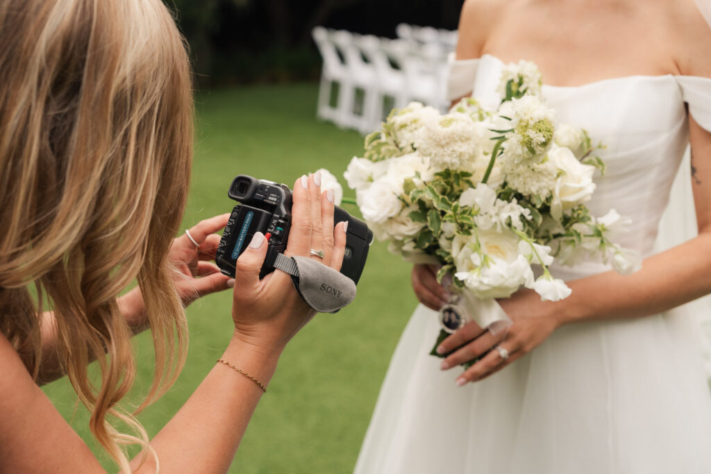 From there, everything unfolded beautifully. Katie, in a flowing organza gown, and David, in a classic black tux, shared private vows outside after their candlelit indoor ceremony—recorded on camcorder by their maid of honor and officiated by Katie’s brother. After some effortless portraits by the venue’s iconic swing and enjoy cocktail hour outdoors before heading into a reception full of greenery, warm wood textures, white florals, and emotional speeches. By nightfall, everyone packed the dance floor, celebrating not just a wedding day but a powerful, love-filled redemption of the one they never got to have.