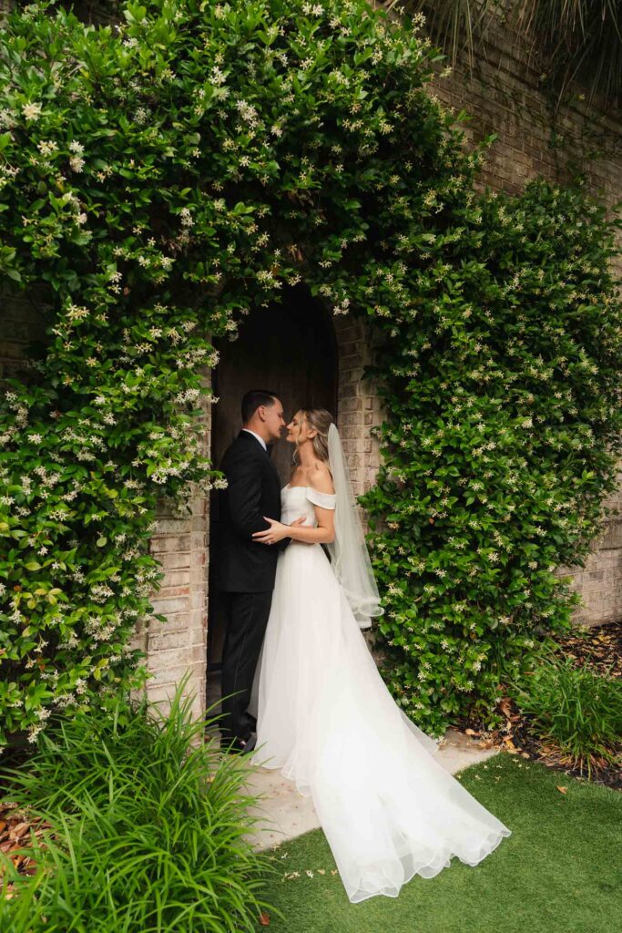 Katie and David’s wedding day at Wrightsville Manor in Wilmington, North Carolina, was the most heartfelt kind of second chance. Their original upstate New York celebration had been halted when Katie’s father became ill, and after moving to North Carolina, they dreamed of another chapter at one of the most enchanting indoor-outdoor venues near Wrightsville Beach. When their October day called for nonstop thunderstorms, Katie was devastated—so much of the venue’s charm lives in its ivy-covered walls, stone archways, willow tree, and outdoor spaces. But in the most unbelievable moment, the rain completely stopped. Every single guest said the same thing: it felt like her dad shifting the weather just for her, clearing the sky so she could have the day she’d always envisioned.