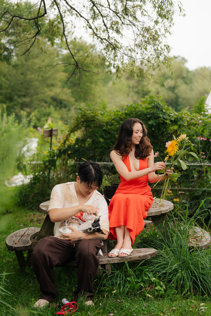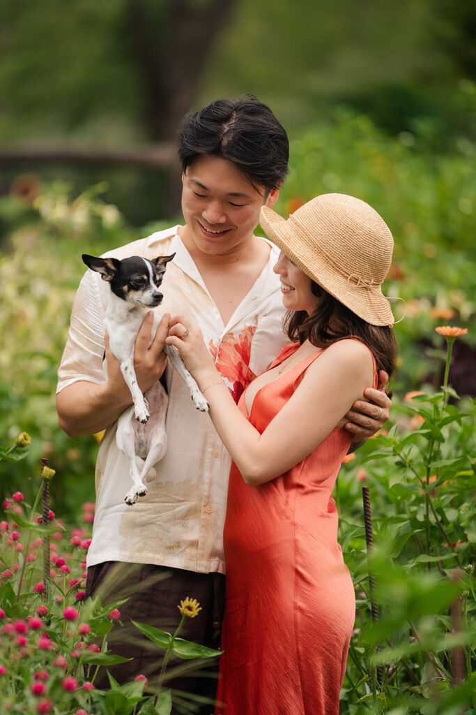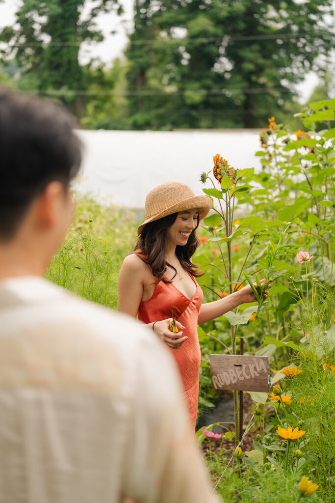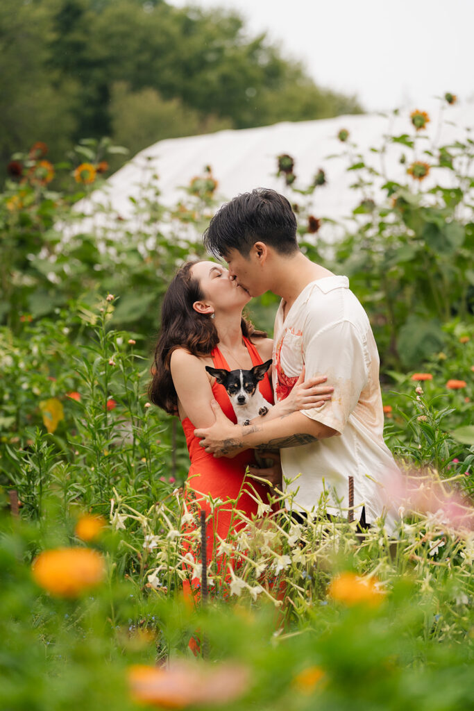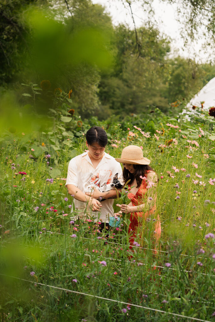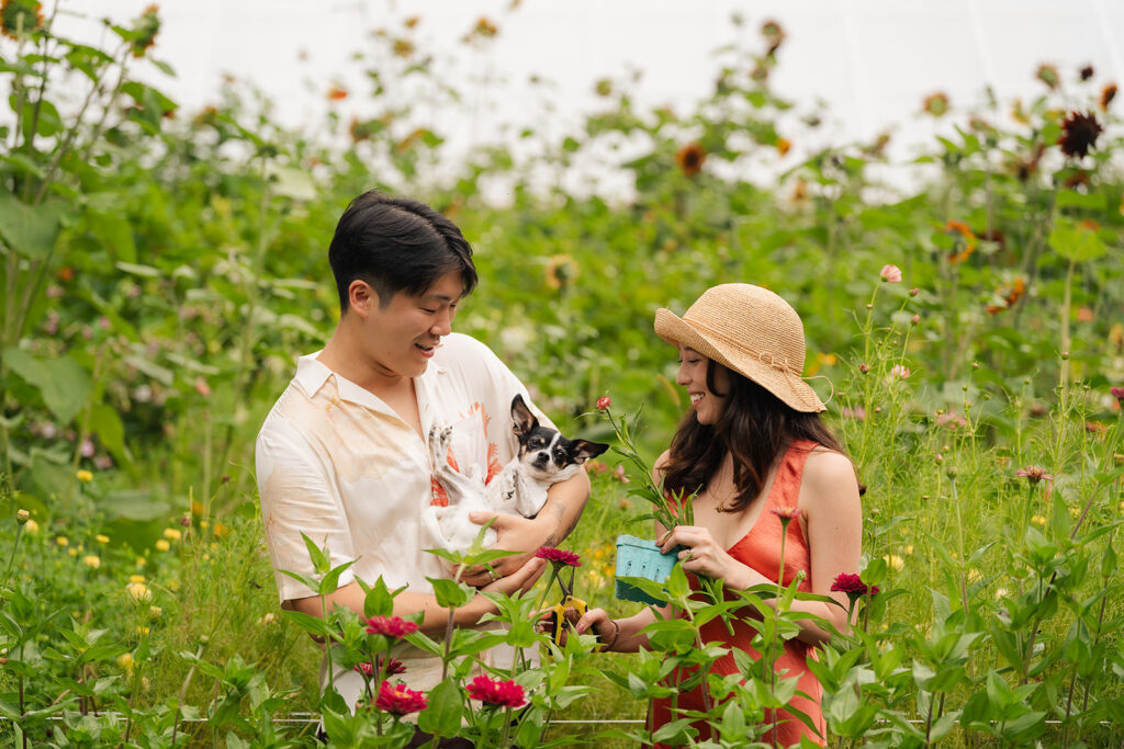 Peter planned out a beautiful proposal plan for his adored girlfriend, Caitlin! Tucked near Kingston, New York is Foxtrot Farm and Flowers. This regenerative flower farm & floral design studio located directly in Stanfordville, NY. Upstate New York has always been sentimental to Caitlin and Peter, so he knew it had to be in the gorgeous, quaint area. They arrived at the farm to pick-their-own flowers, meanwhile Peter was ready to pick her forever. Peter bent down on his knee, among beds of native flowers to ask for her hand in marriage. She said yes, giddily. They spent the next hour happily collecting flowers, reminiscing on their journey, and playing with Chow Jr! It was such a sweet proposal – Foxtrot Farm and Flowers is a great intimate location nestled into 600-acres of protected land making it an idyllic setting for many a special occasion! Book your micro-wedding here or other small events!