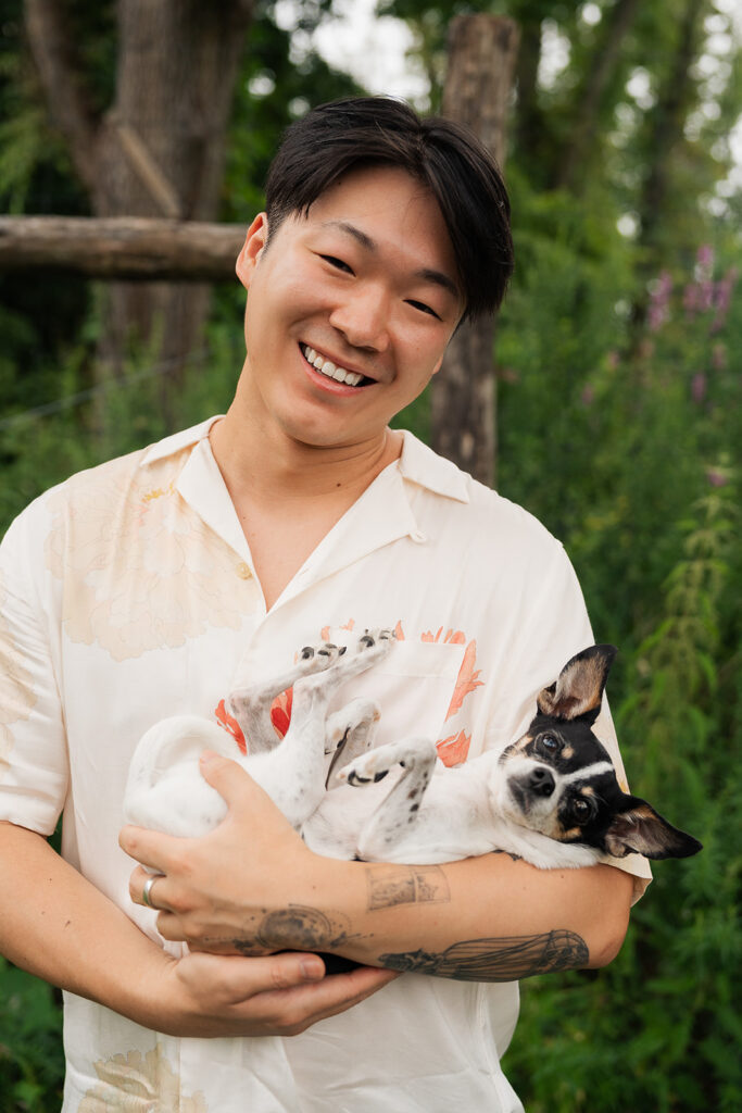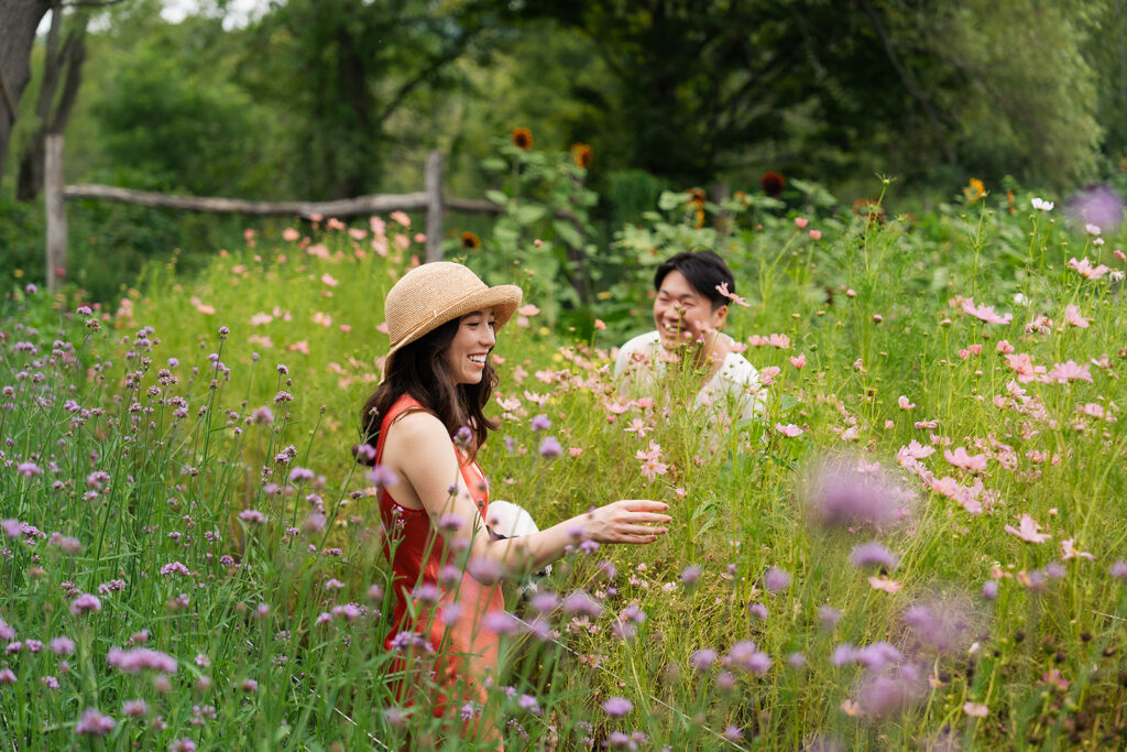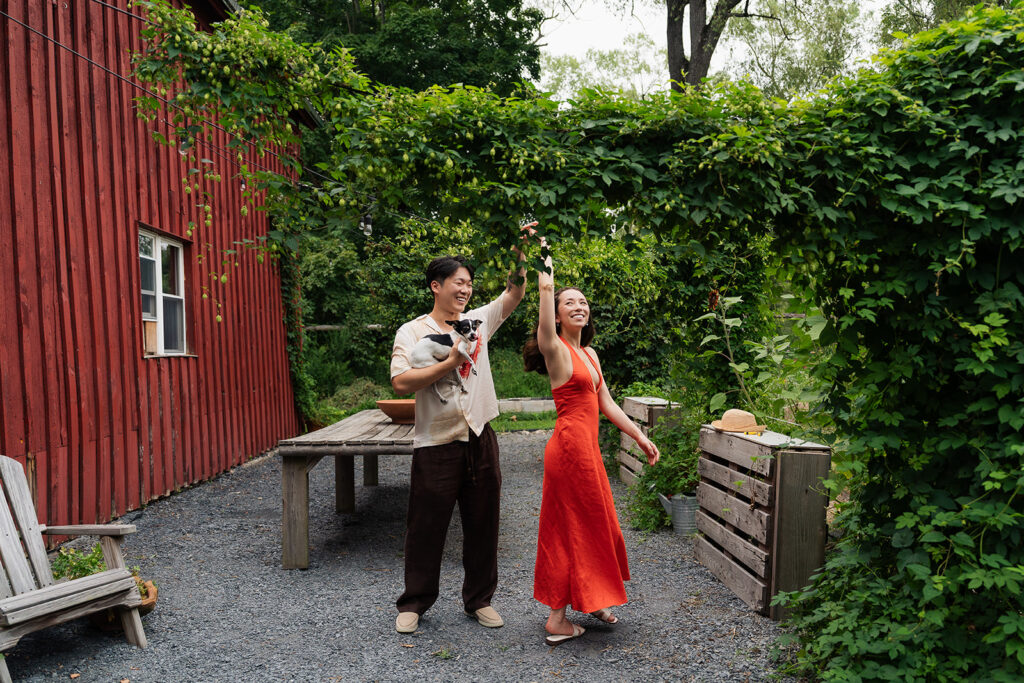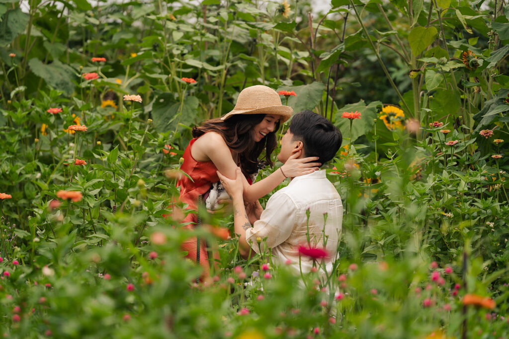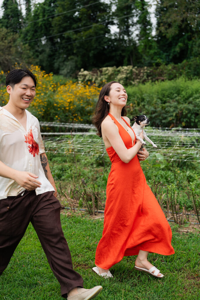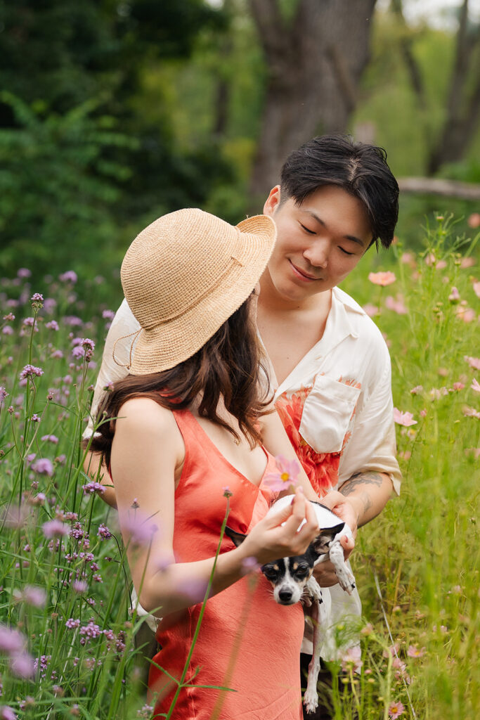 Peter planned out a beautiful proposal plan for his adored girlfriend, Caitlin! Tucked near Kingston, New York is Foxtrot Farm and Flowers. This regenerative flower farm & floral design studio located directly in Stanfordville, NY. Upstate New York has always been sentimental to Caitlin and Peter, so he knew it had to be in the gorgeous, quaint area. They arrived at the farm to pick-their-own flowers, meanwhile Peter was ready to pick her forever. Peter bent down on his knee, among beds of native flowers to ask for her hand in marriage. She said yes, giddily. They spent the next hour happily collecting flowers, reminiscing on their journey, and playing with Chow Jr! It was such a sweet proposal – Foxtrot Farm and Flowers is a great intimate location nestled into 600-acres of protected land making it an idyllic setting for many a special occasion! Book your micro-wedding here or other small events!