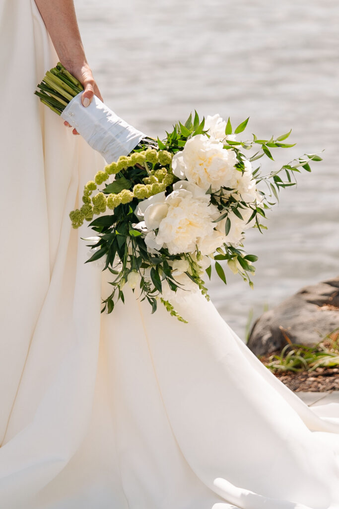 The couple exchanged vows outside overlooking the lake. The ceremony space featured wooden chairs and soft white florals. Golden sunlight poured in behind them as they said “I do.” Inside, the reception design stayed clean and sophisticated. White and green florals filled the space. The evening ended with dancing, celebration, and so much joy. Brittany and Robert’s wedding at the Indian Trail Club was the perfect blend of classic style and heartfelt moments.