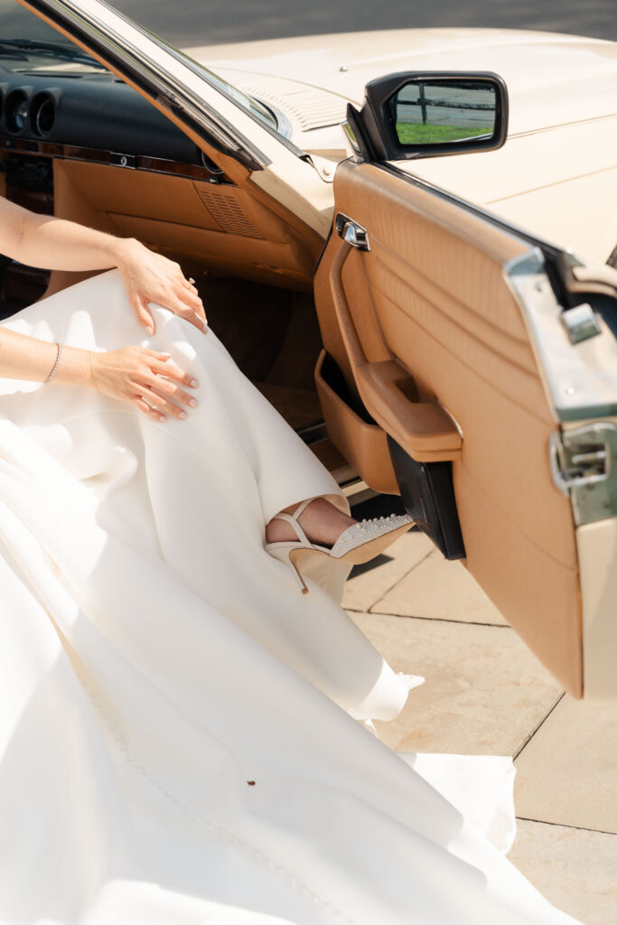One of the most unique touches Brittany and Robert incorporated into their wedding day was a beautiful vintage car parked right outside the venue. It fit their vintage-inspired style perfectly and made for some incredibly timeless portraits. Between Brittany’s elegant bridal look, Robert’s classic attire, and the vintage car as a backdrop, their portraits felt straight out of an old movie — effortlessly stylish and completely timeless.