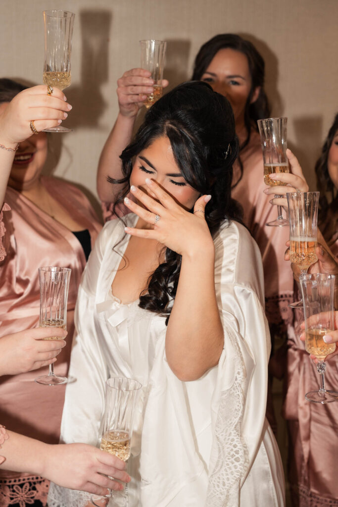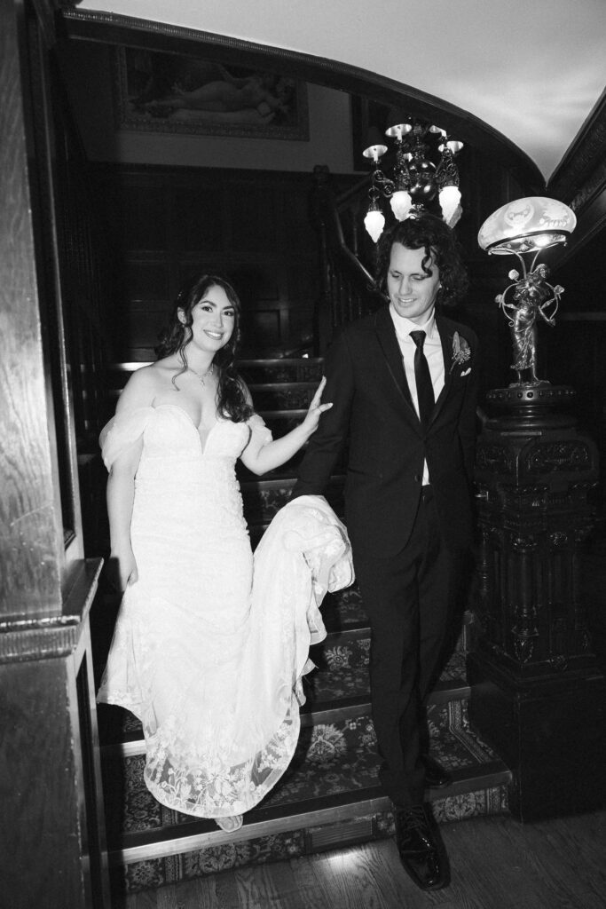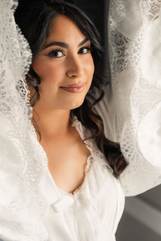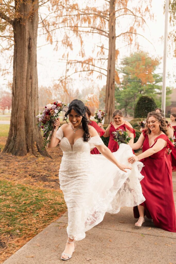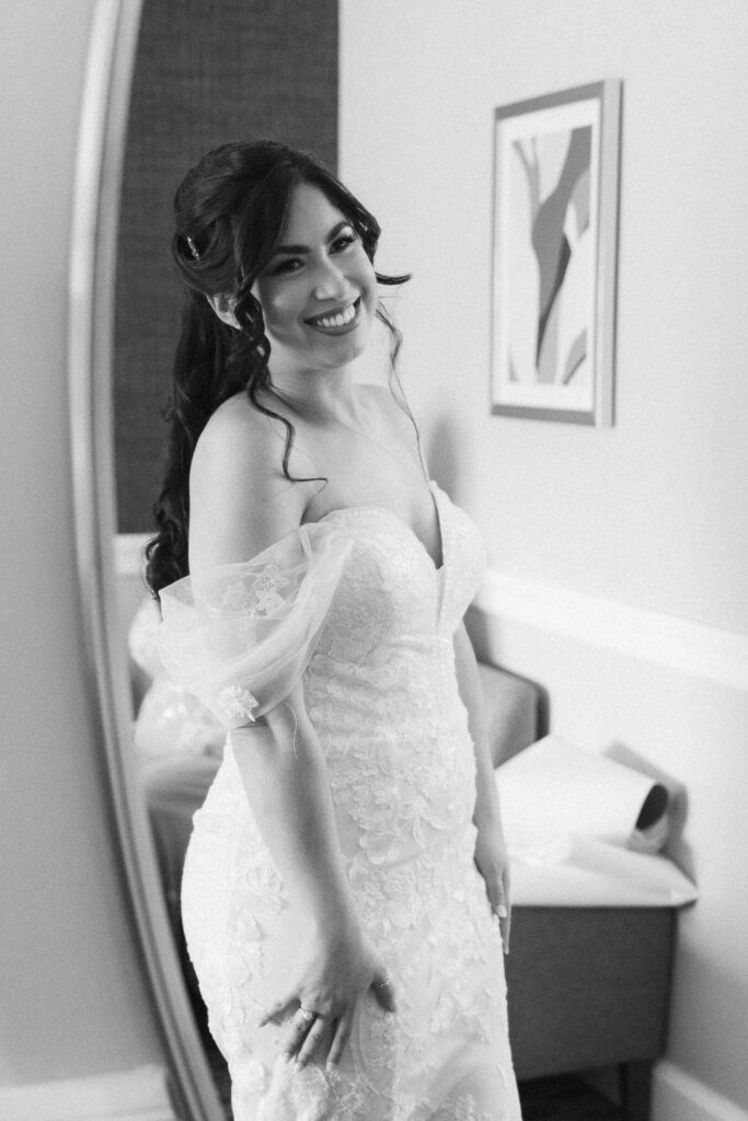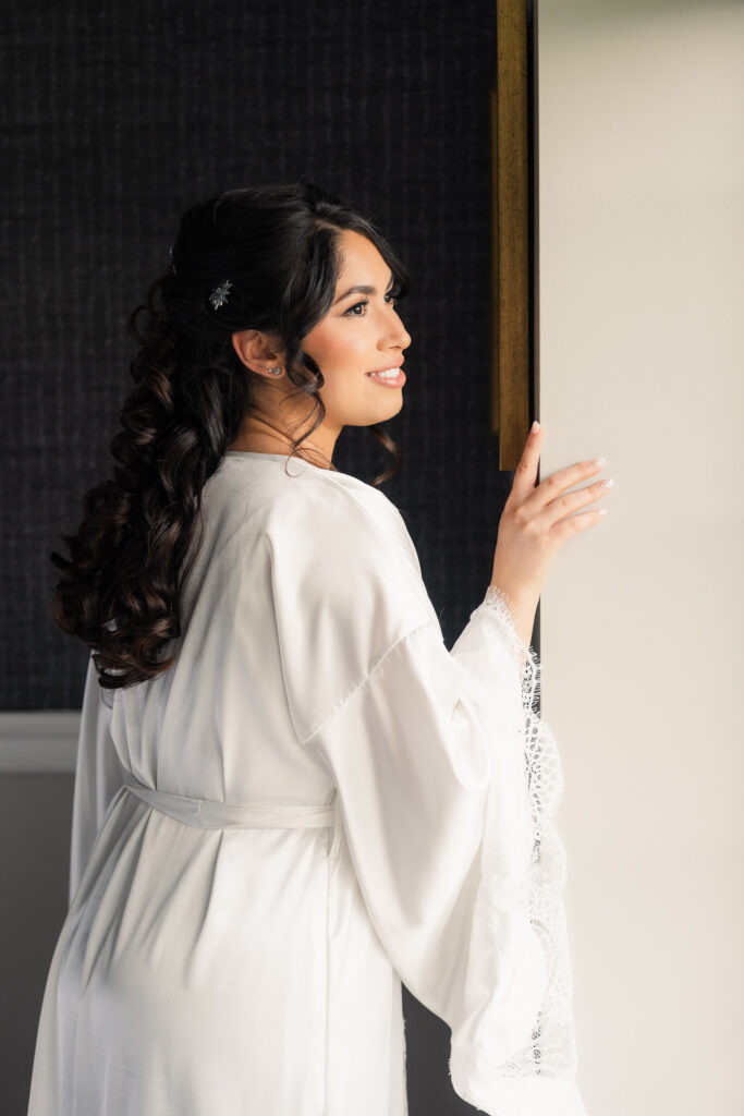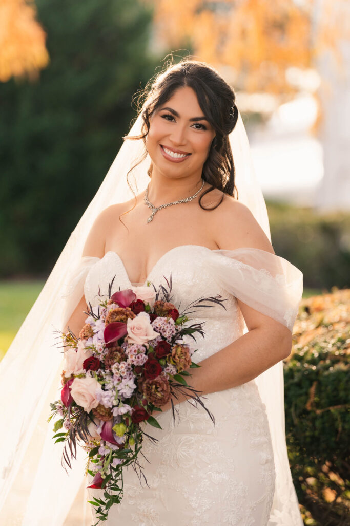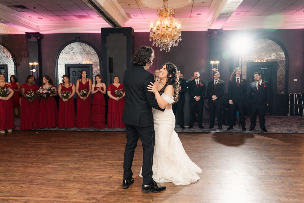 Theresa and Alex’s late autumn wedding at The Madison Hotel in Morristown, New Jersey felt effortlessly romantic, with just the right amount of drama and warmth woven throughout the day. Subtle hints of Phantom of the Opera added a personal, theatrical touch. I adore Phantom of The Opera so I was freaking out the whole time! In Theresa’s look she wore Christine’s iconic star hair clips tucked into her softly styled curls. The day began with quiet anticipation as Theresa got ready, soaking in the final moments before becoming a wife. Instead of a traditional first look, Theresa and Alex chose a first touch before their ceremony, standing just out of sight from one another. Wrapped in that private pause, they shared a few heartfelt words, grounding themselves and easing any nerves before walking into one of the most meaningful moments of their lives.