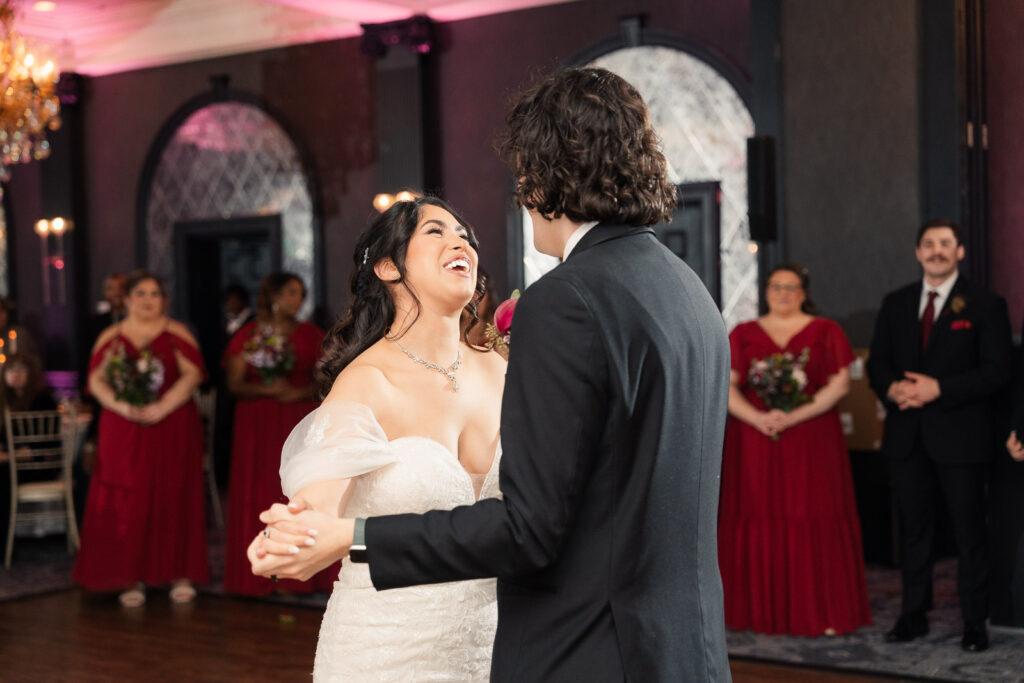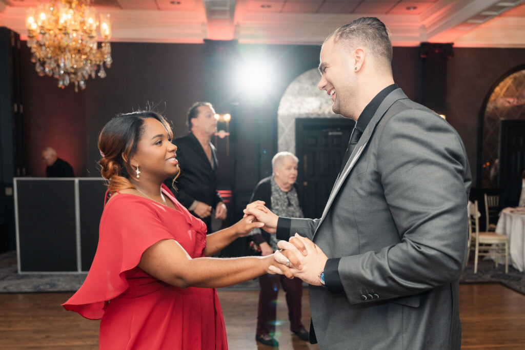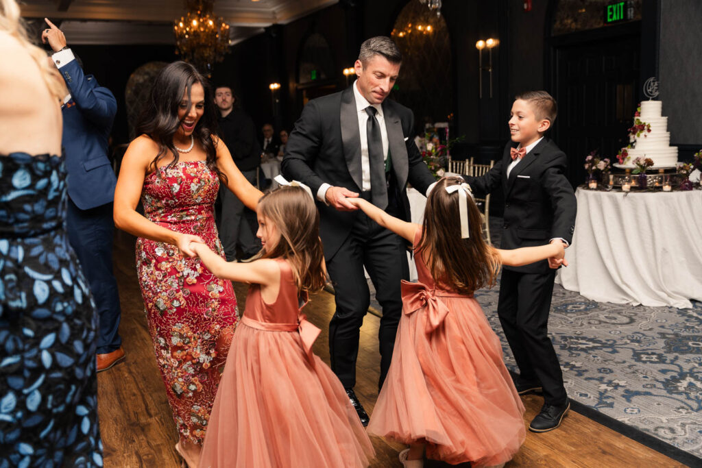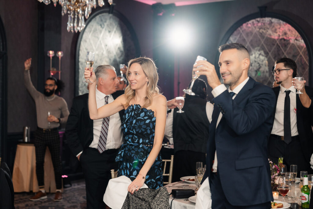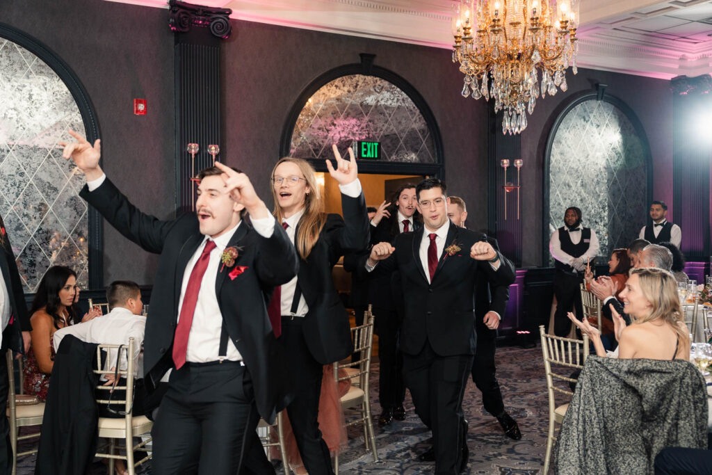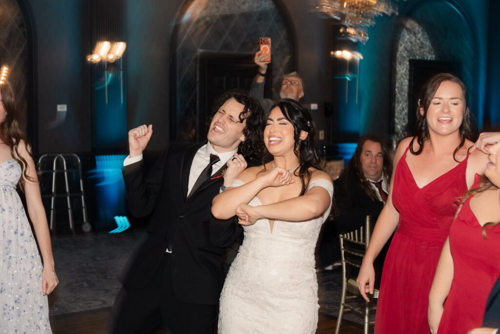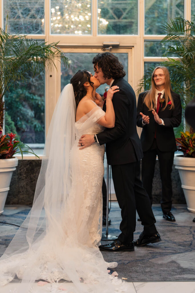 Their ceremony took place in The Madison Hotel’s greenhouse space, an intimate setting filled with natural light and a timeless, elegant atmosphere that perfectly complemented the season. As Theresa walked down the aisle, Alex couldn’t hold back his tears—an emotional reaction that set the tone for a ceremony filled with love, connection, and quiet joy. The celebration continued into a lively reception where laughter and personality took center stage. One of the most memorable moments was Theresa’s father-daughter dance, which quickly turned hilarious and playful, filling the room with laughter and applause. Later, during cake cutting, Theresa added to the fun by playfully dotting frosting on Alex’s nose, a moment that perfectly reflected their lighthearted dynamic. The night unfolded with nonstop dancing, heartfelt toasts, and an unmistakable sense that everyone in the room was exactly where they were meant to be—celebrating a love story that was both deeply emotional and wonderfully fun.